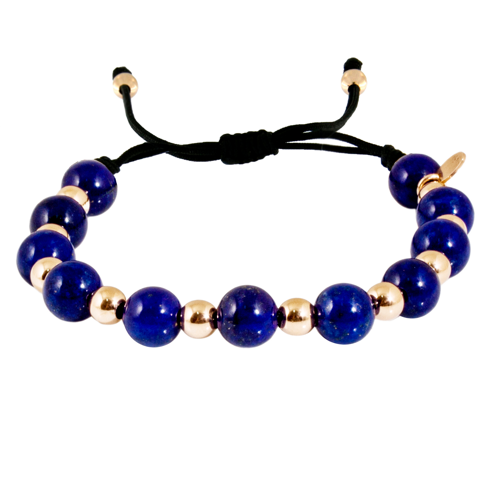 Pulsera oro rosa 18K, lapislazuli, bola 5mm, Cordón de nailon ajustable de 15cm a 25cm
