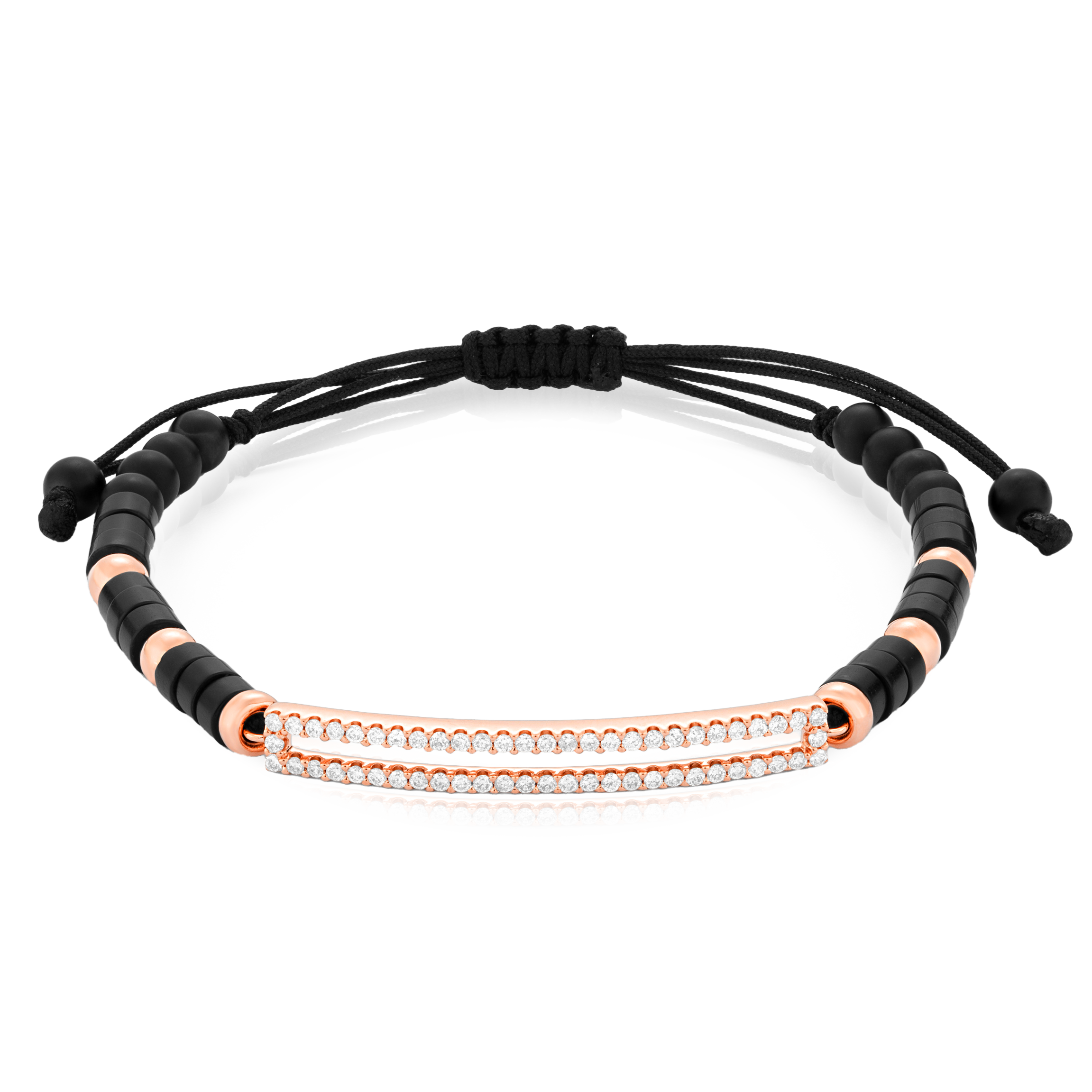 Pulsera oro rosa 18K, onix, 56 piedras, riviere bola 4mm