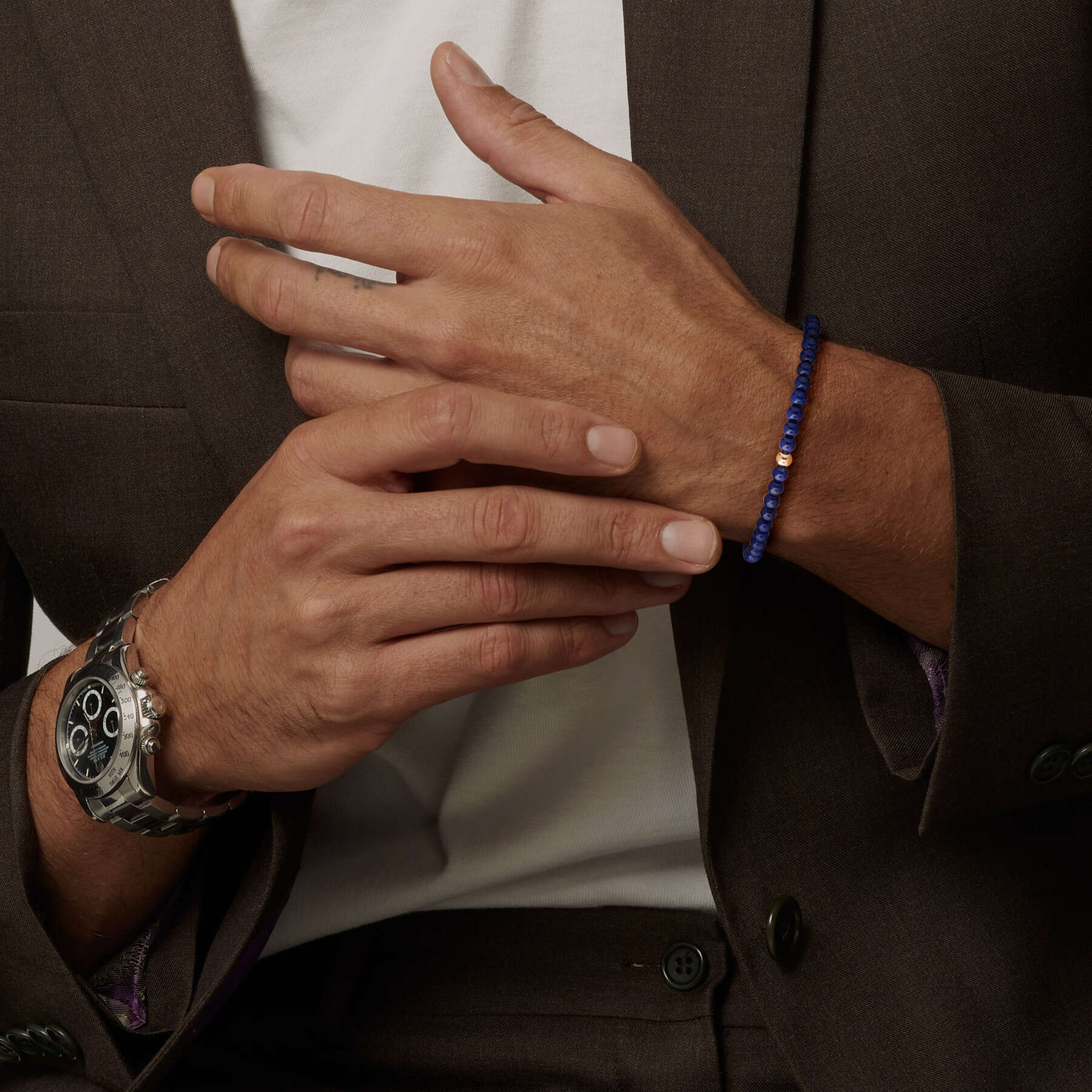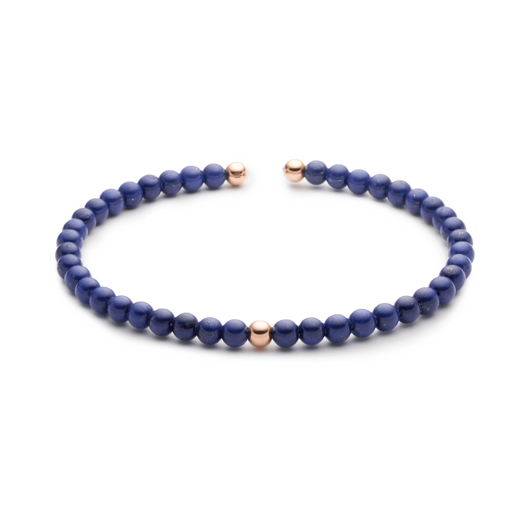 Pulsera oro rosa 18K, lapislazuli, bola 4mm titanio talla M (16.0cm)