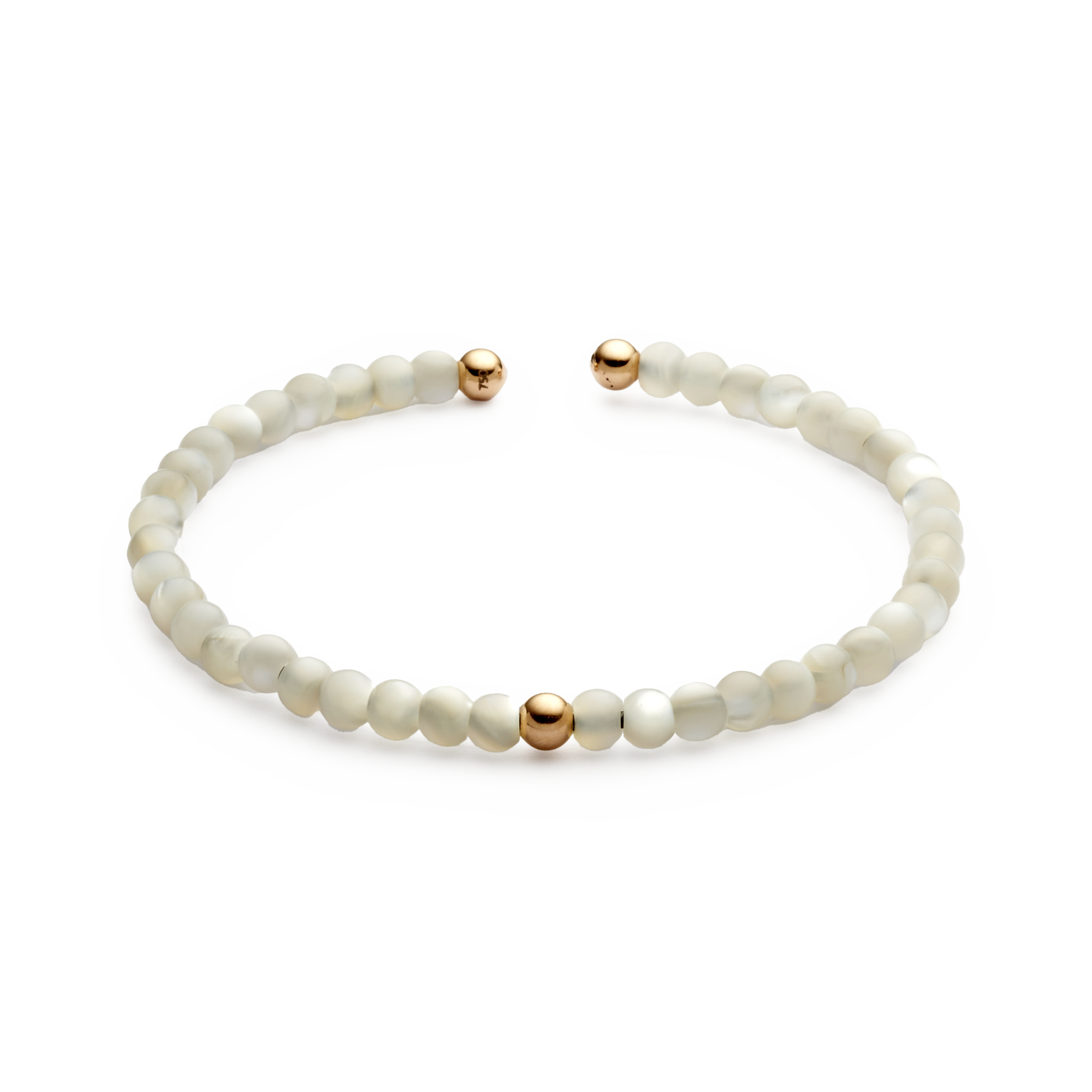 Pulsera oro rosa 18K, madre perla, bola 4mm