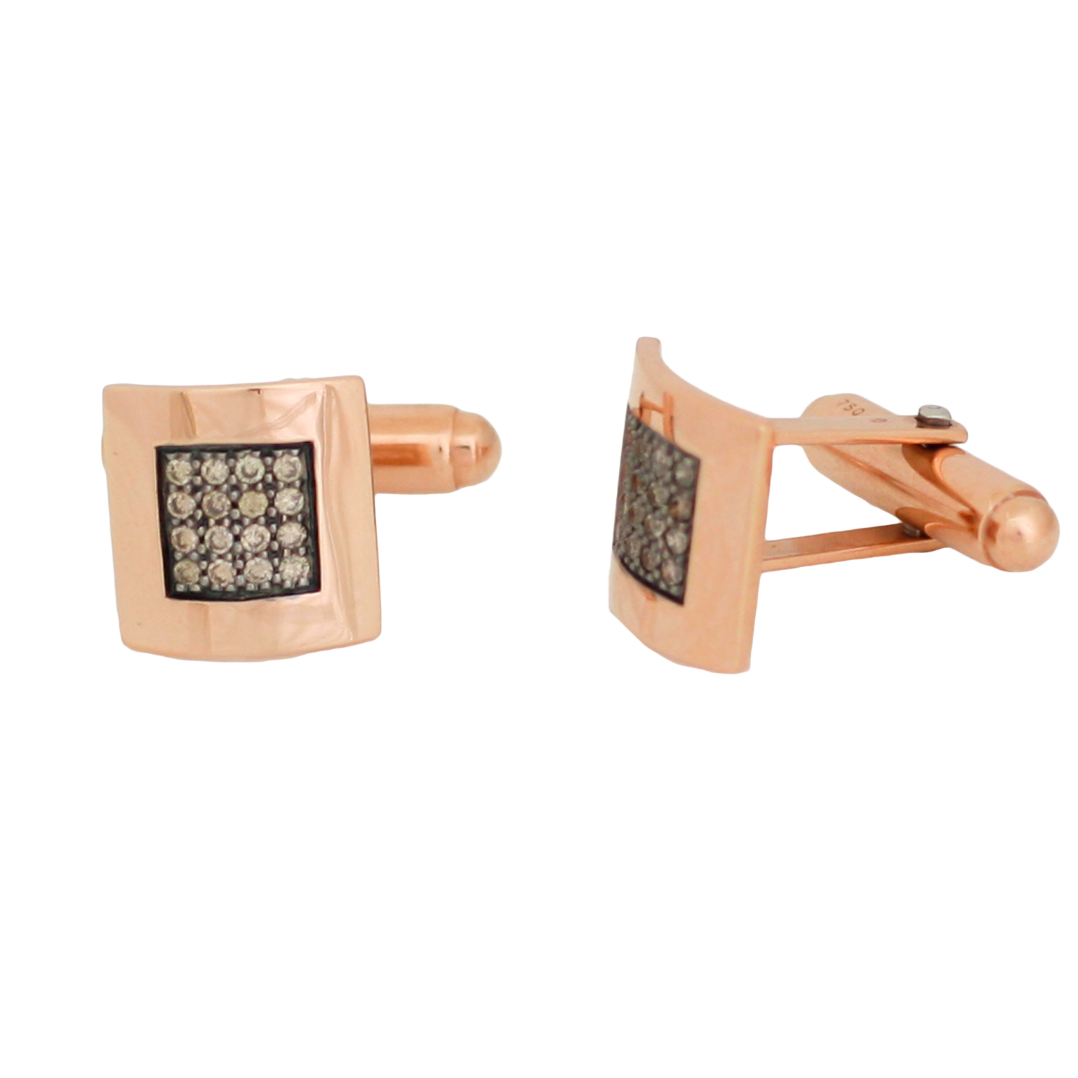 Gemelos oro rosa 18K, diamante brown 0.39 ct, 32 piedras, cierre gemelos