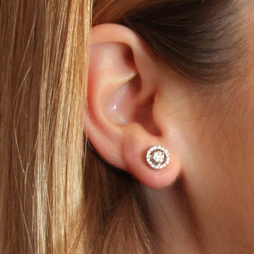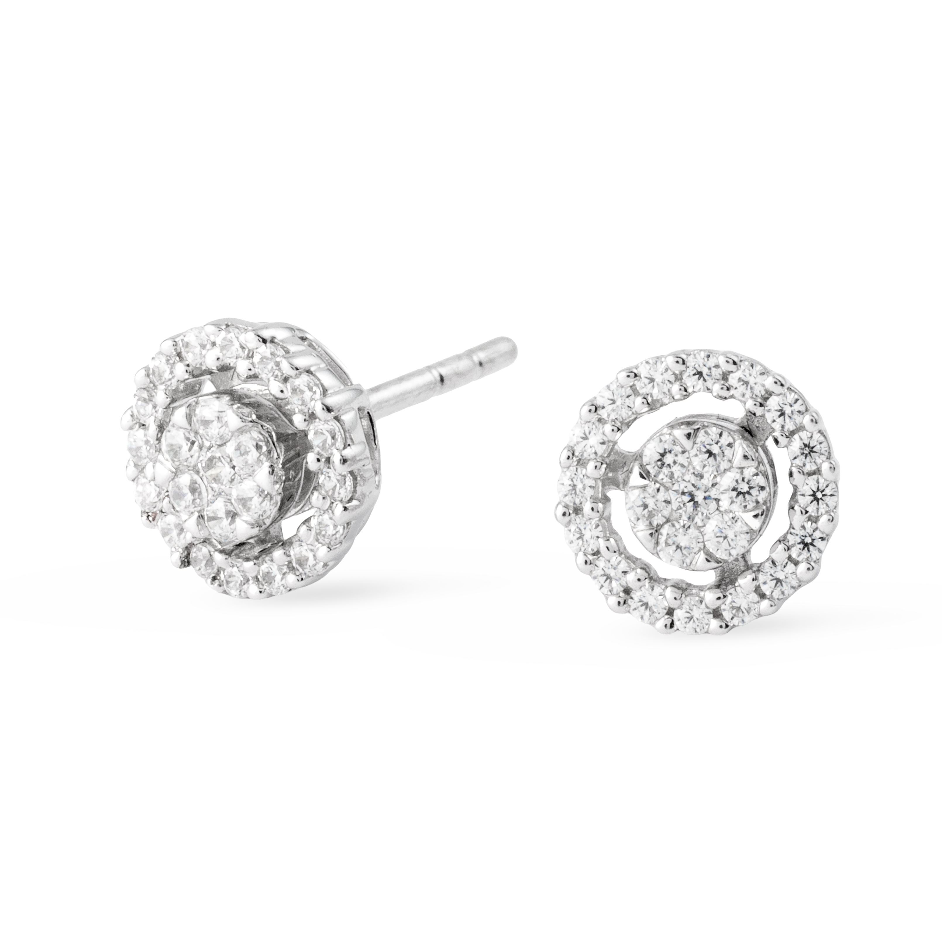 Pendientes oro blanco 18K, diamante color GH, claridad SI 0.35 ct, 46 piedras, cierre presión