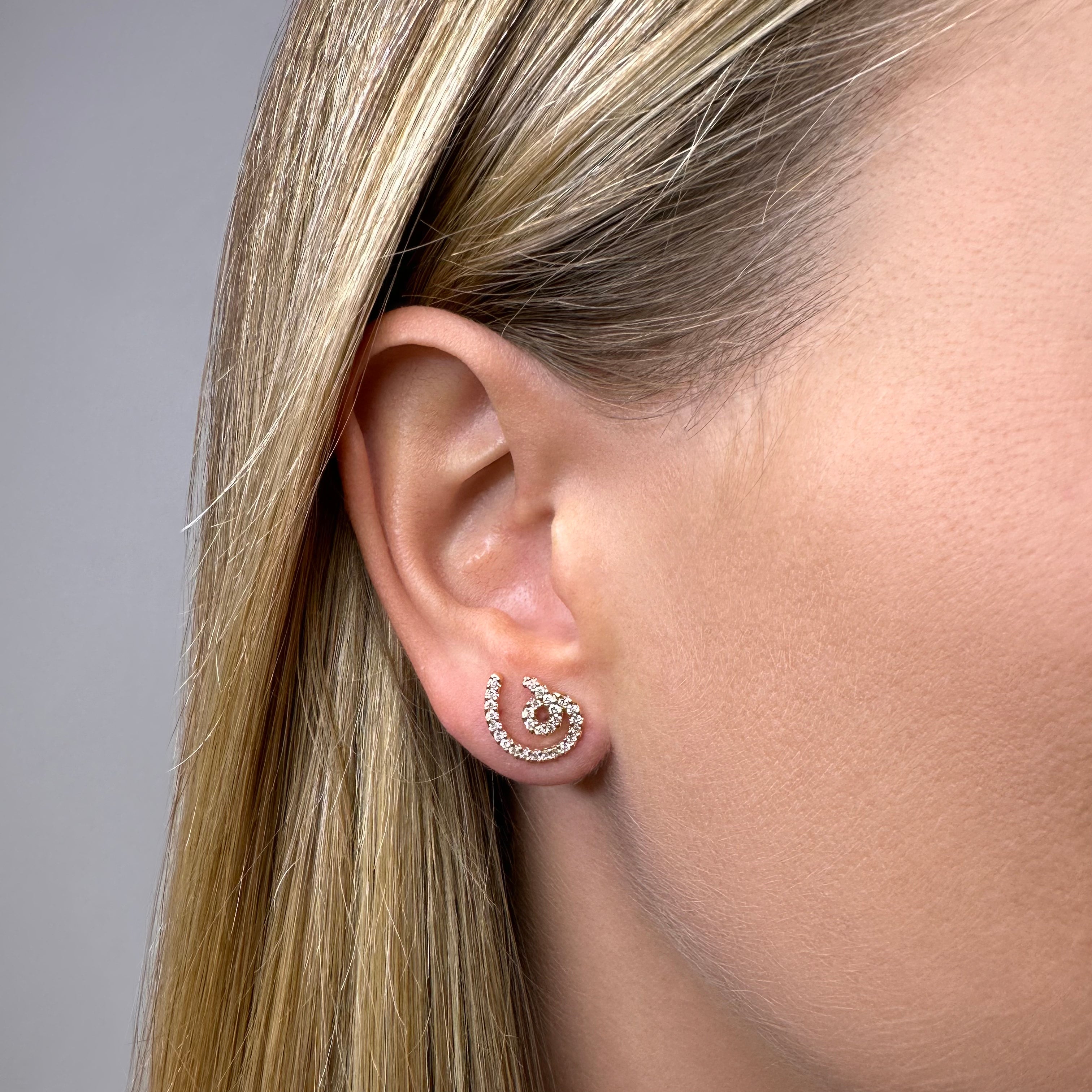 Pendientes oro rosa 18K, diamante color GH, claridad SI 0.49 ct, 56 piedras, cierre presión