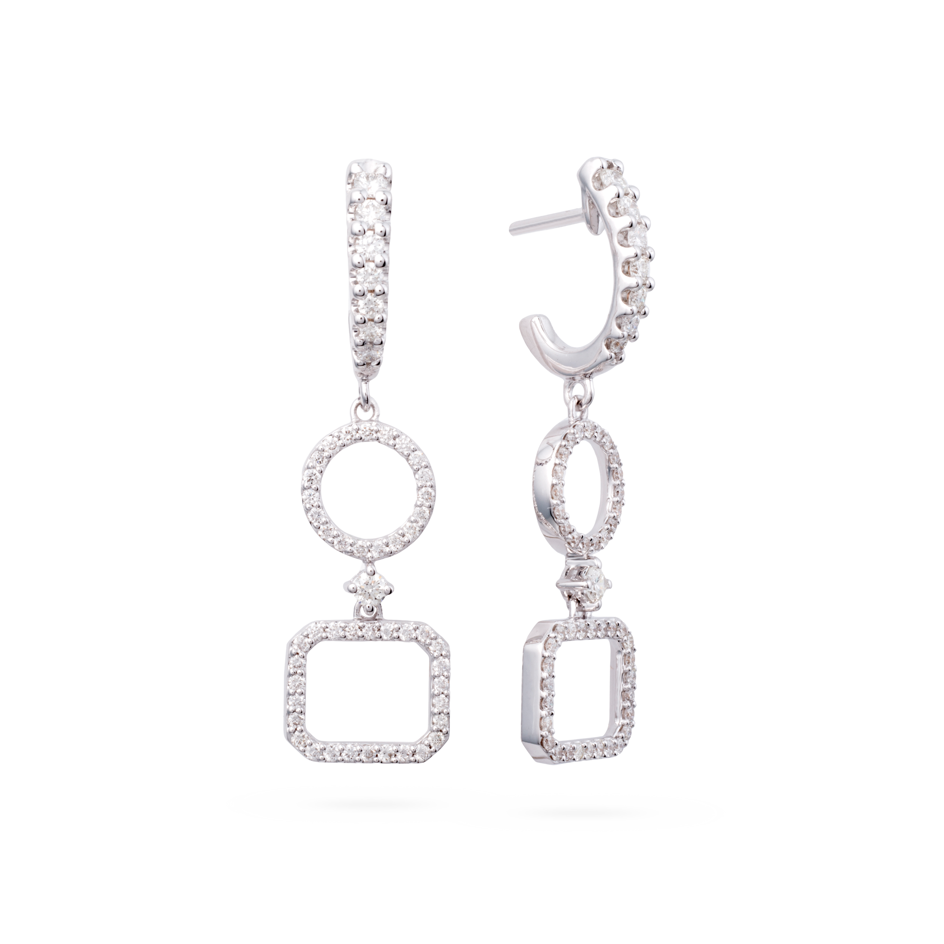 Pendientes oro blanco 18K, diamante color GH, claridad SI 0.82 ct, 106 piedras, cierre presión
