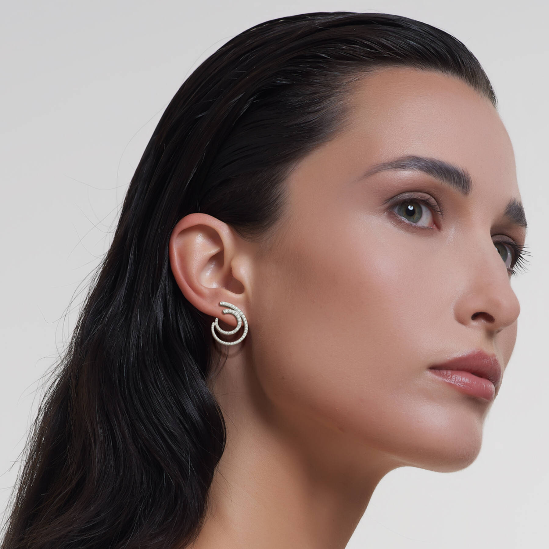 Pendientes oro blanco 18K, diamante color GH, claridad SI 1.02 ct, 108 piedras, cierre presión