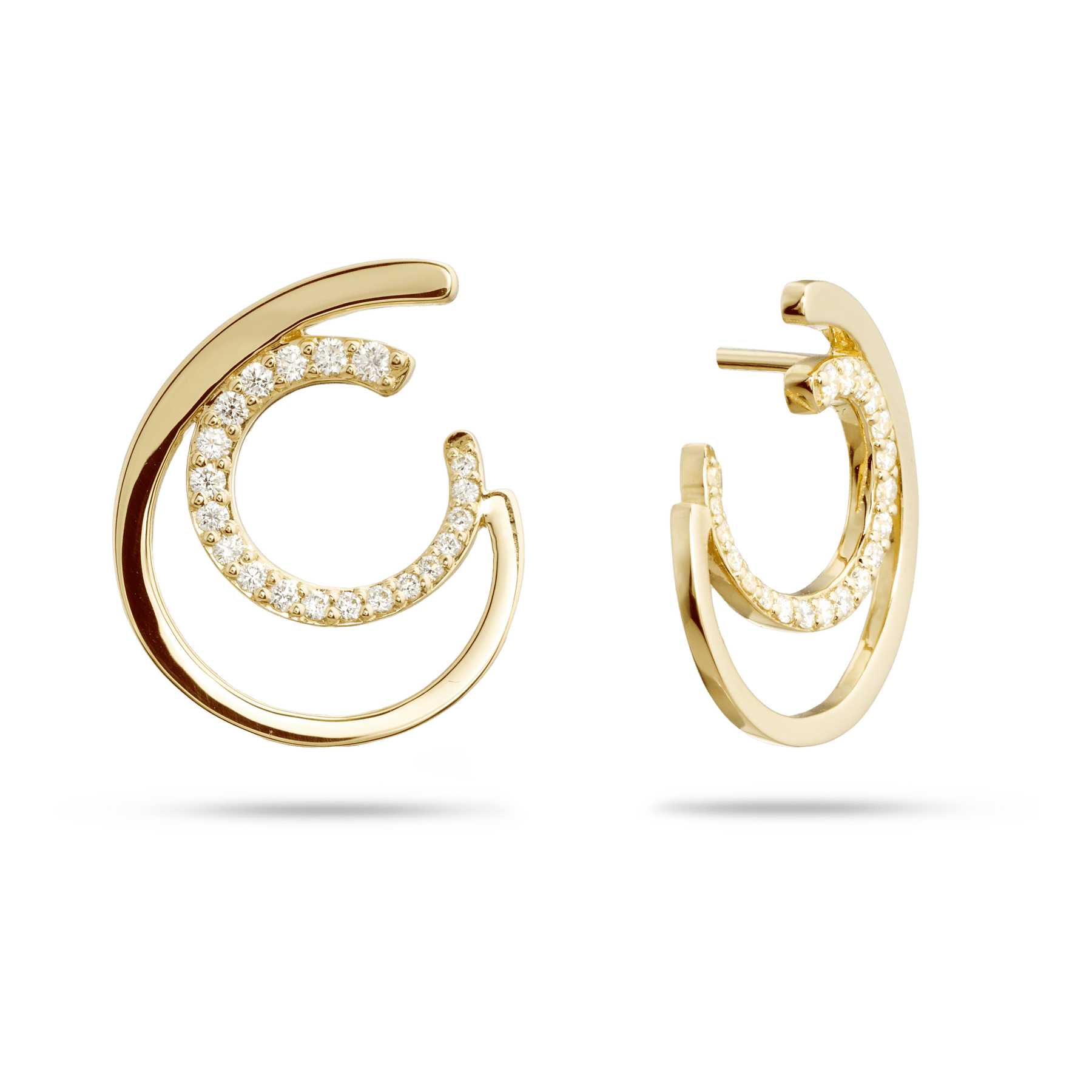 Pendientes oro amarillo 18K, diamante color GH, claridad SI 0.45 ct, 40 piedras, cierre presión