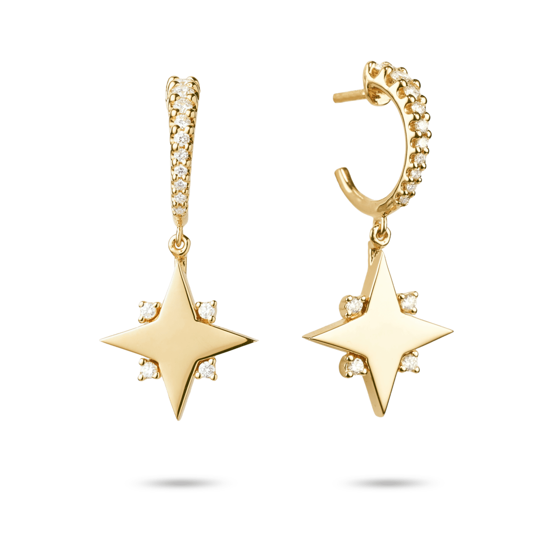 Pendientes oro amarillo 18K, diamante color GH, claridad SI 0.37 ct, 28 piedras, cierre presión