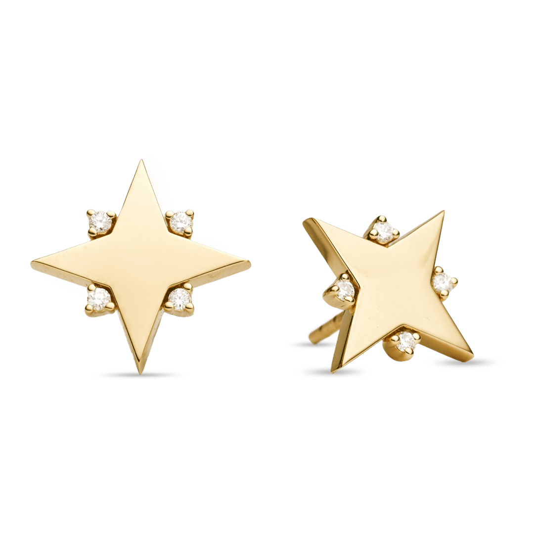 Pendientes oro amarillo 18K, diamante color GH, claridad SI 0.09 ct, 8 piedras, cierre presión