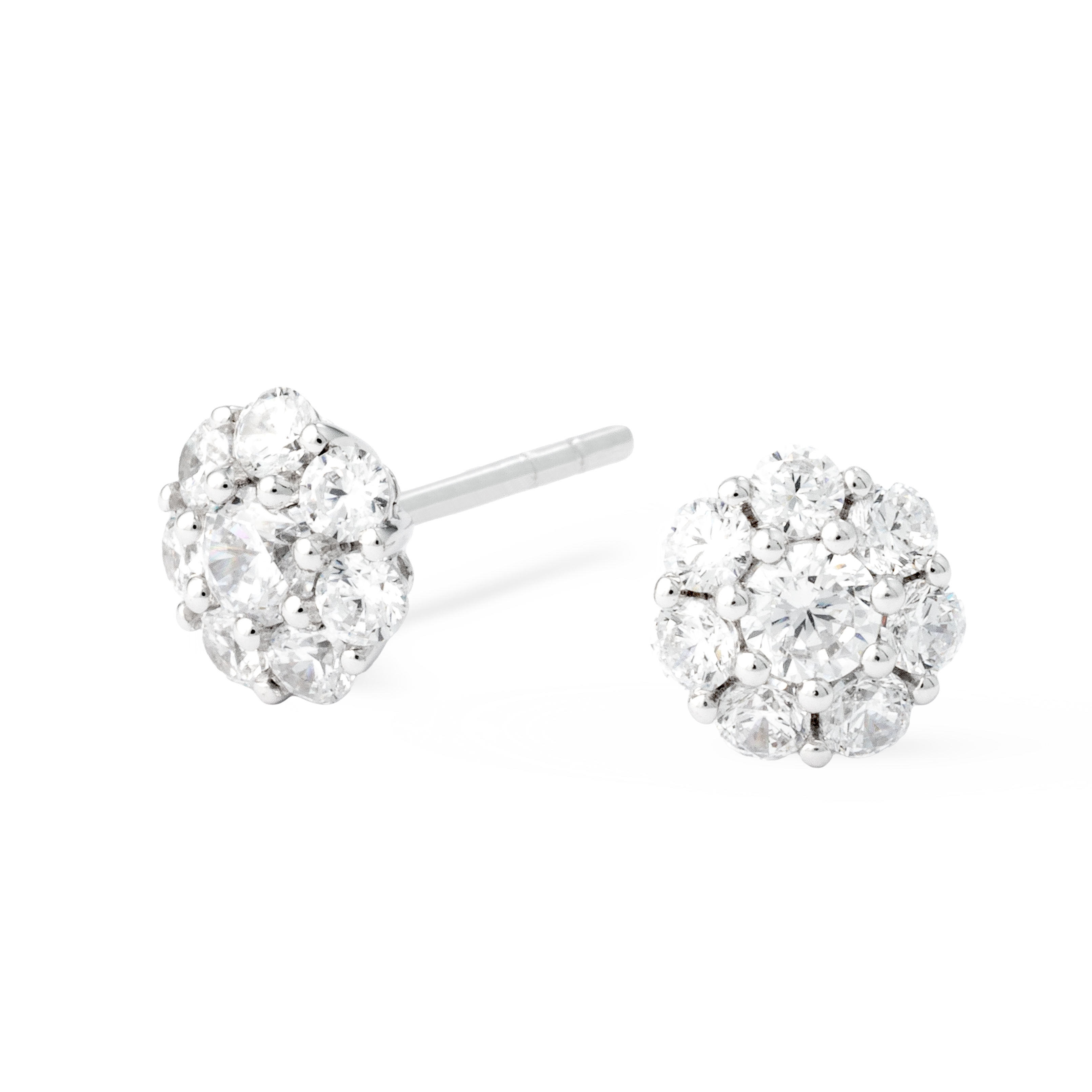 Pendientes oro blanco 18K, diamante color GH, claridad SI 1.03 ct, 16 piedras, cierre presión