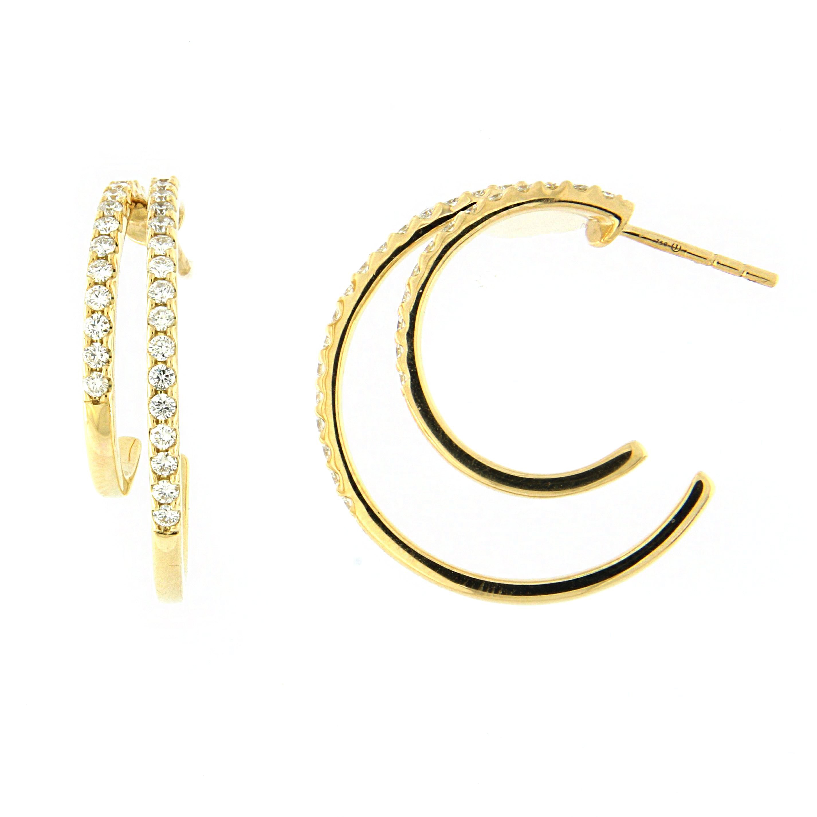 Pendientes oro amarillo 18K, diamante color GH, claridad SI 0.98 ct, 64 piedras, cierre presión