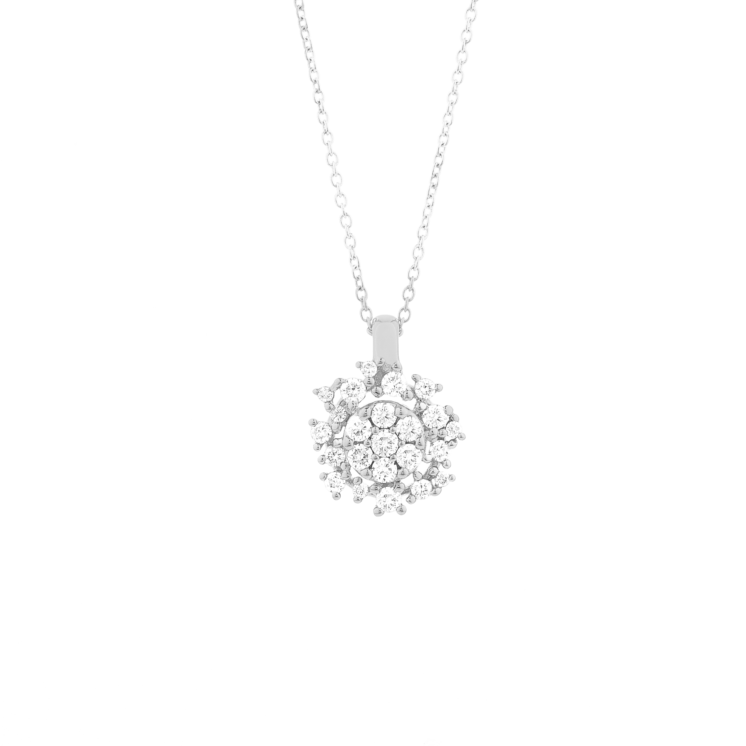 Colgante oro rosa 18K, diamante color GH, claridad SI 0.22 ct, 23 piedras, cadena rolo 42cm cierre mosqueton