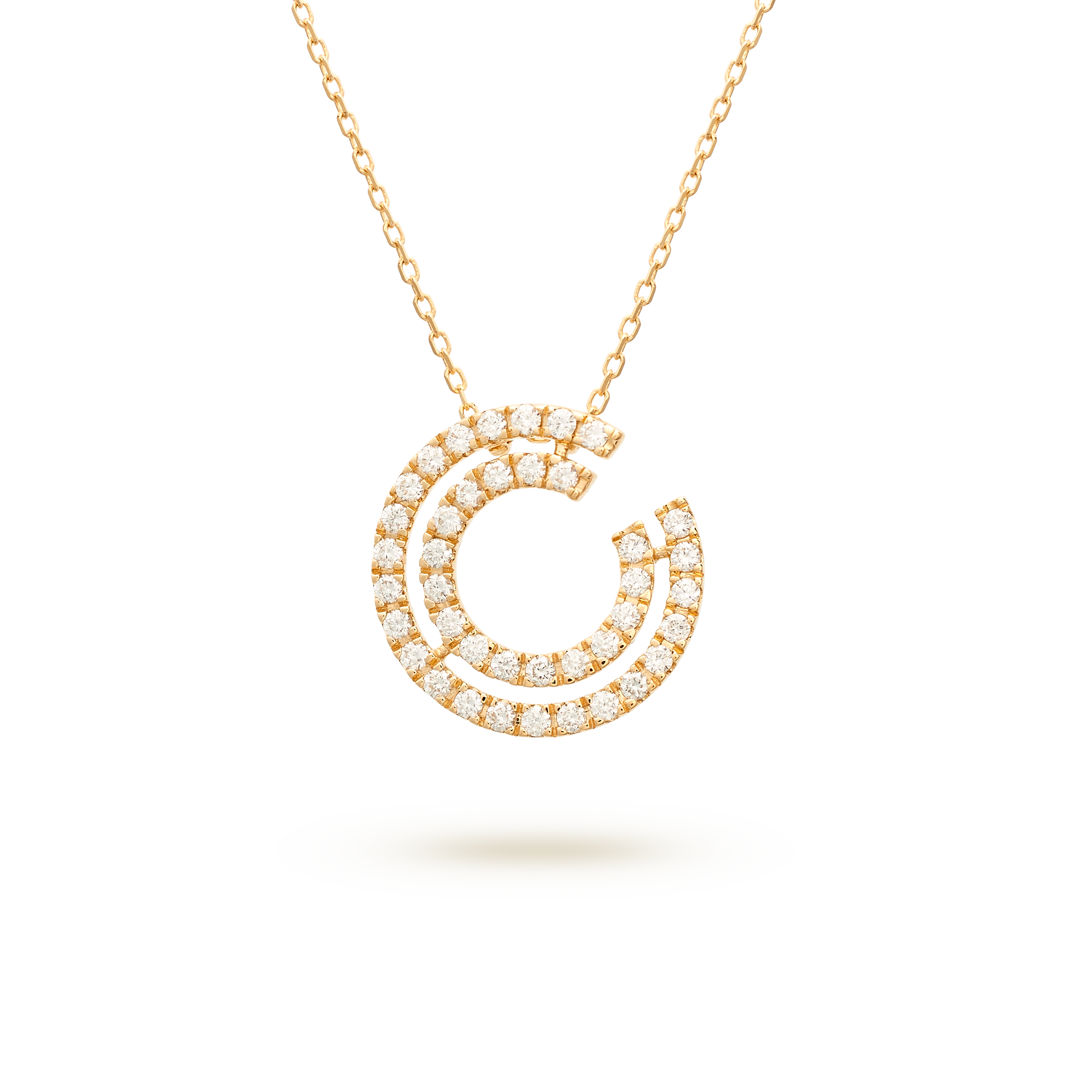 Colgante oro amarillo 18K, diamante color GH, claridad SI 0.39 ct, 40 piedras, cadena 42cm cierre mosqueton