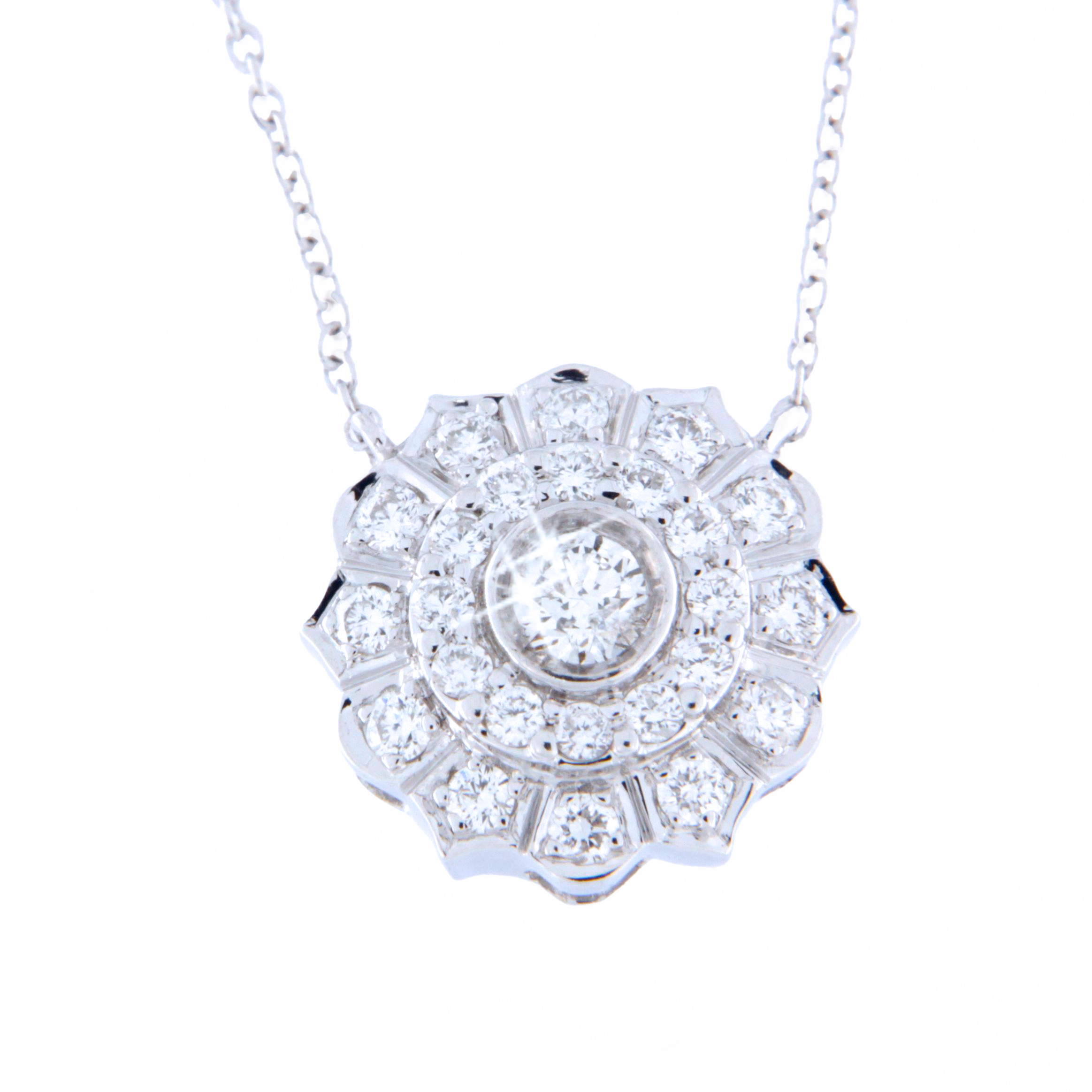 Colgante oro blanco 18K, diamante color GH, claridad SI 0.26 ct, 25 piedras, cadena 42cm cierre mosqueton