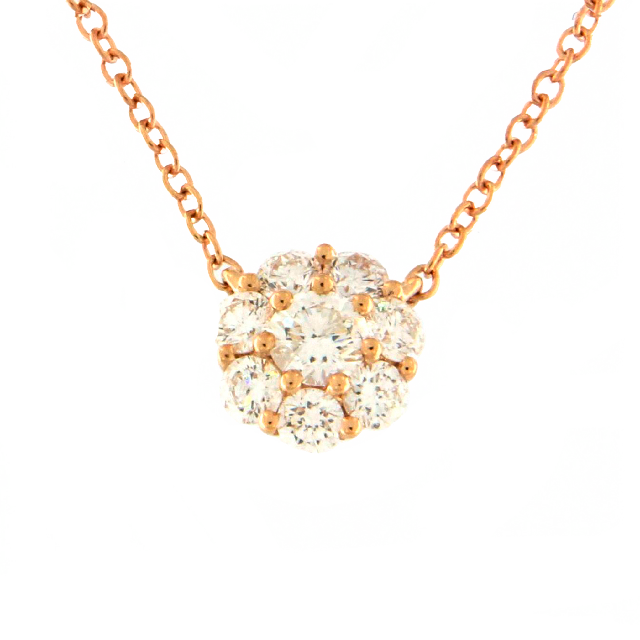 Colgante oro rosa 18K, diamante color GH, claridad SI 0.36 ct, 8 piedras, cadena rolo 42cm cierre mosqueton