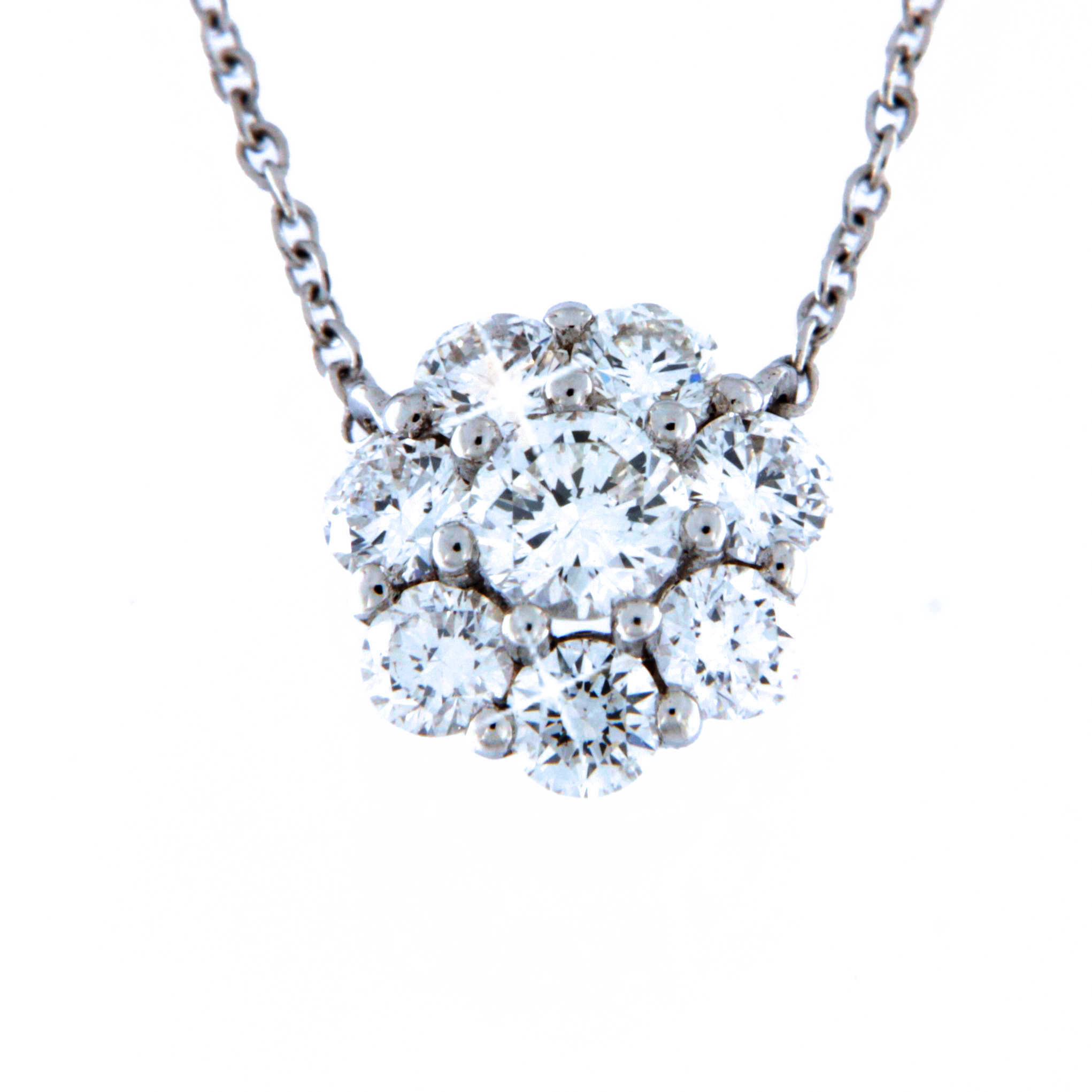 Colgante oro blanco 18K, diamante color GH, claridad SI 0.53 ct, 8 piedras, cadena 42cm cierre mosqueton