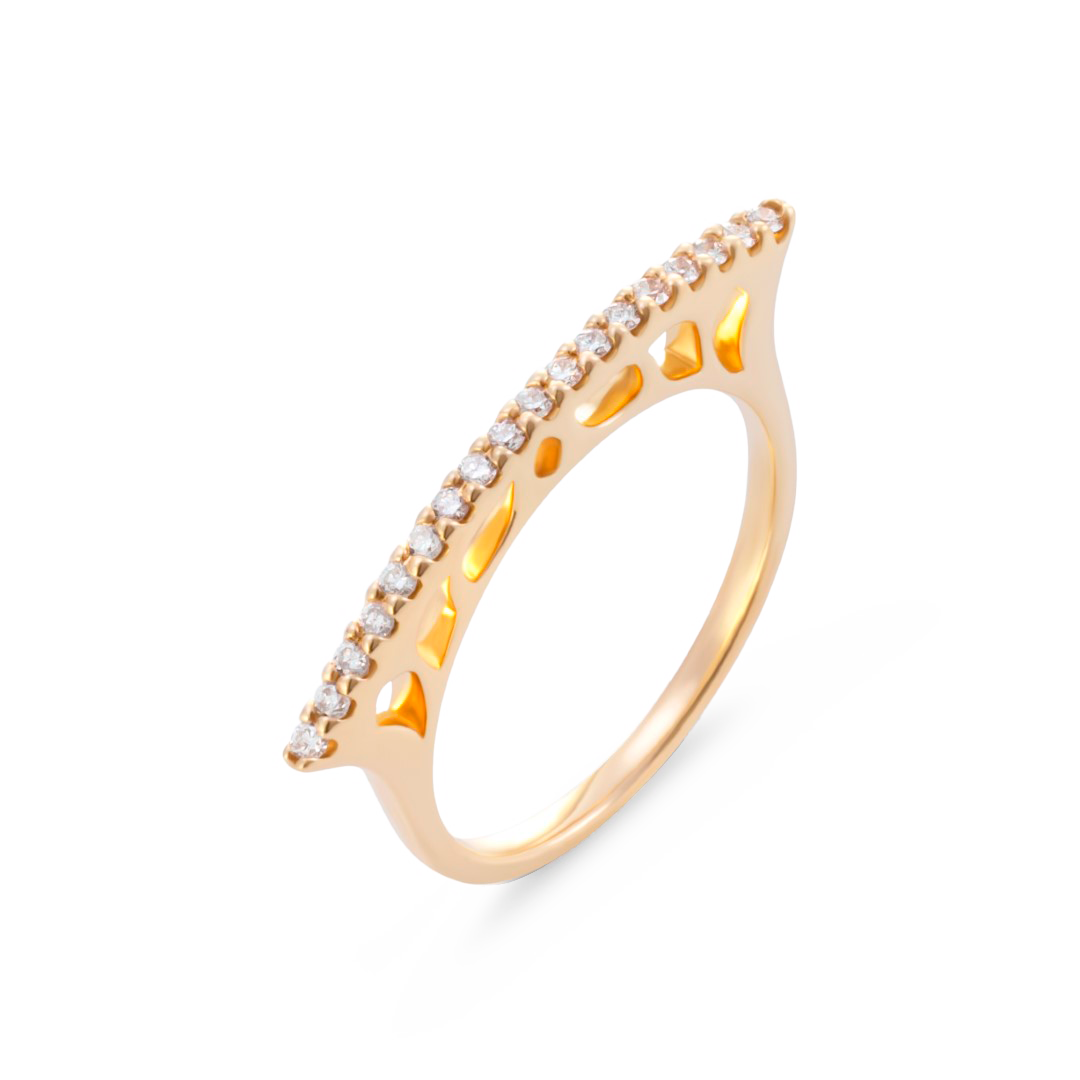 Sortija oro rosa 18K, diamante color GH, claridad SI 0.15 ct, 18 piedras