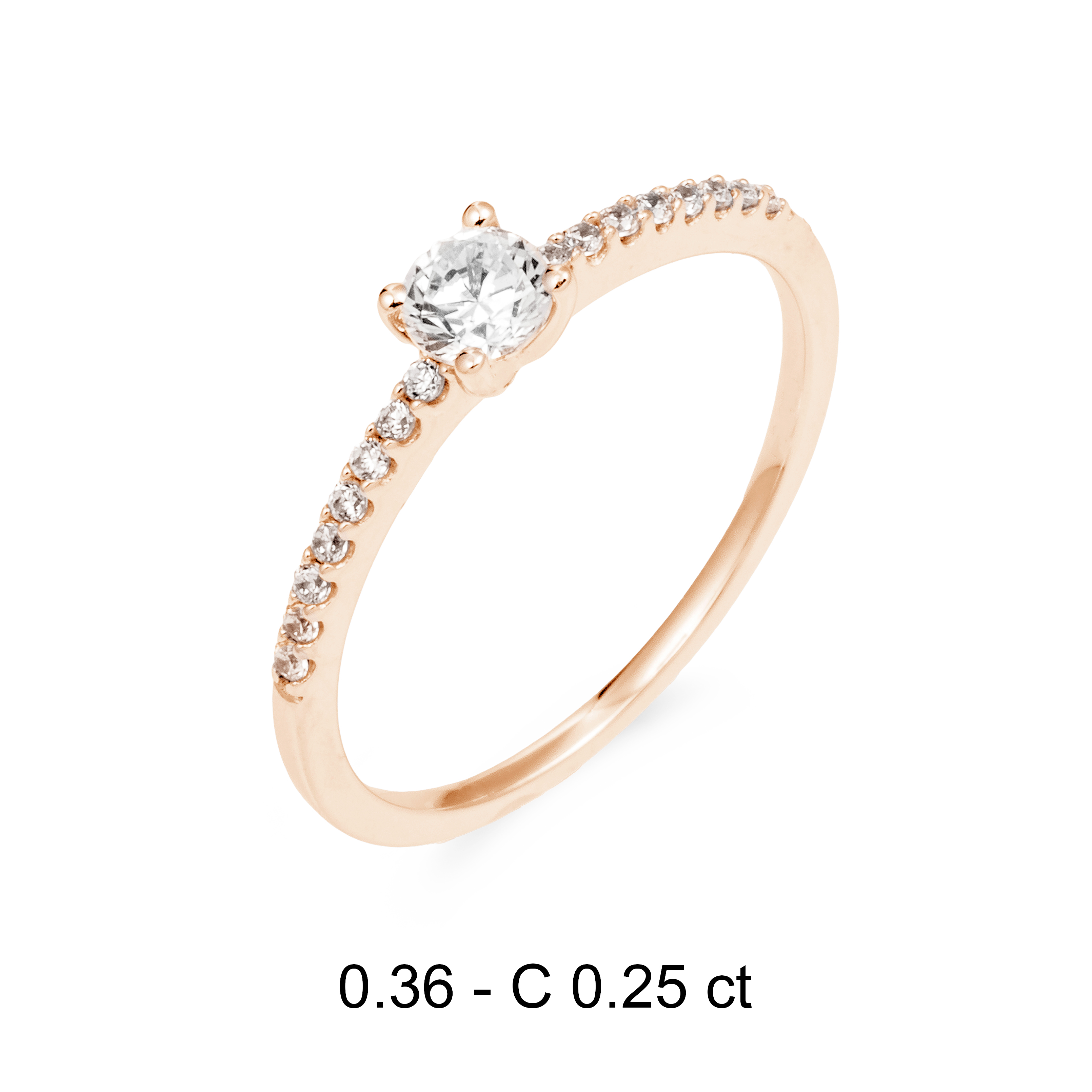 Sortija oro rosa 18K, diamante color GH, claridad SI 0.36 ct, 17 piedras