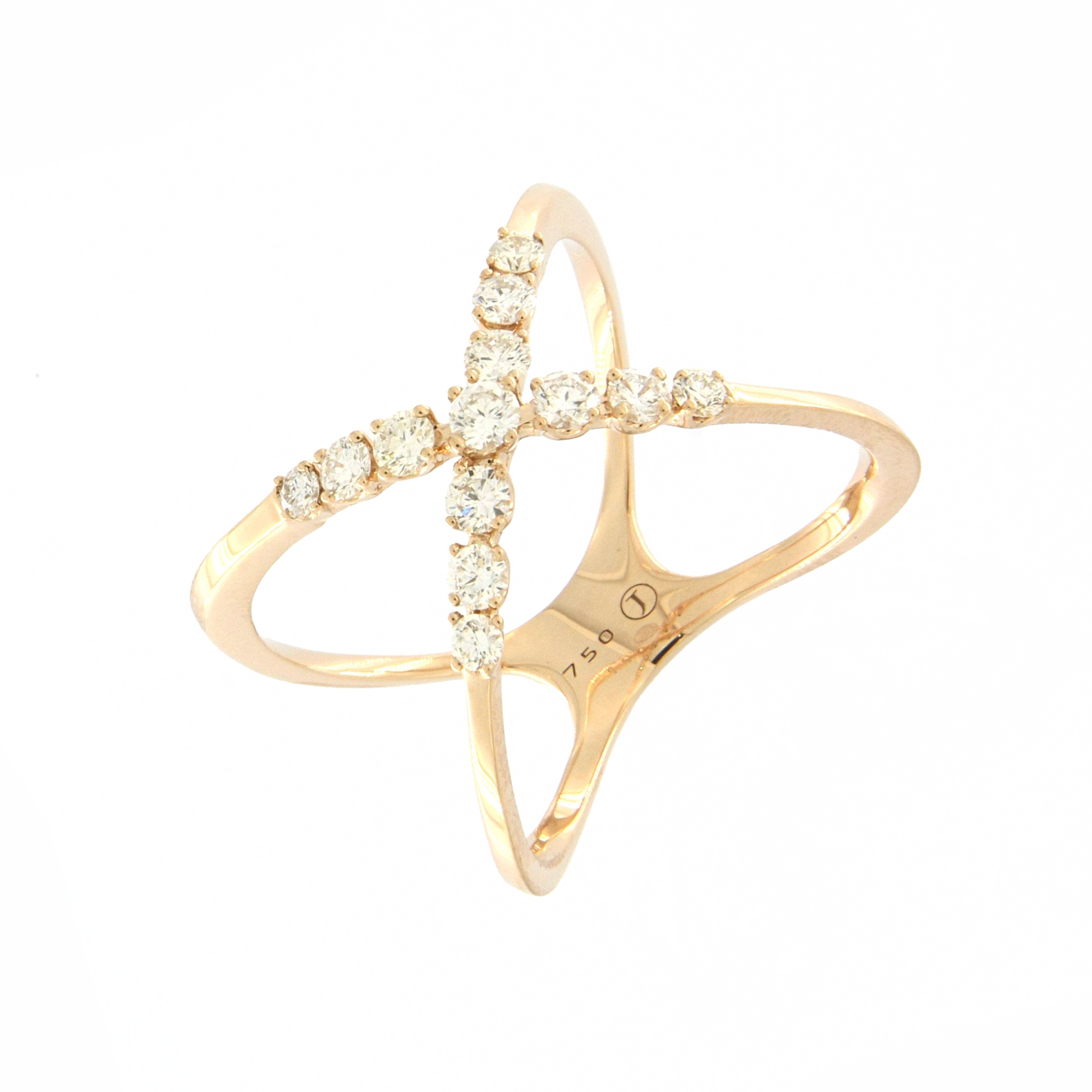 Sortija oro rosa 18K, diamante color GH, claridad SI 0.53 ct, 13 piedras
