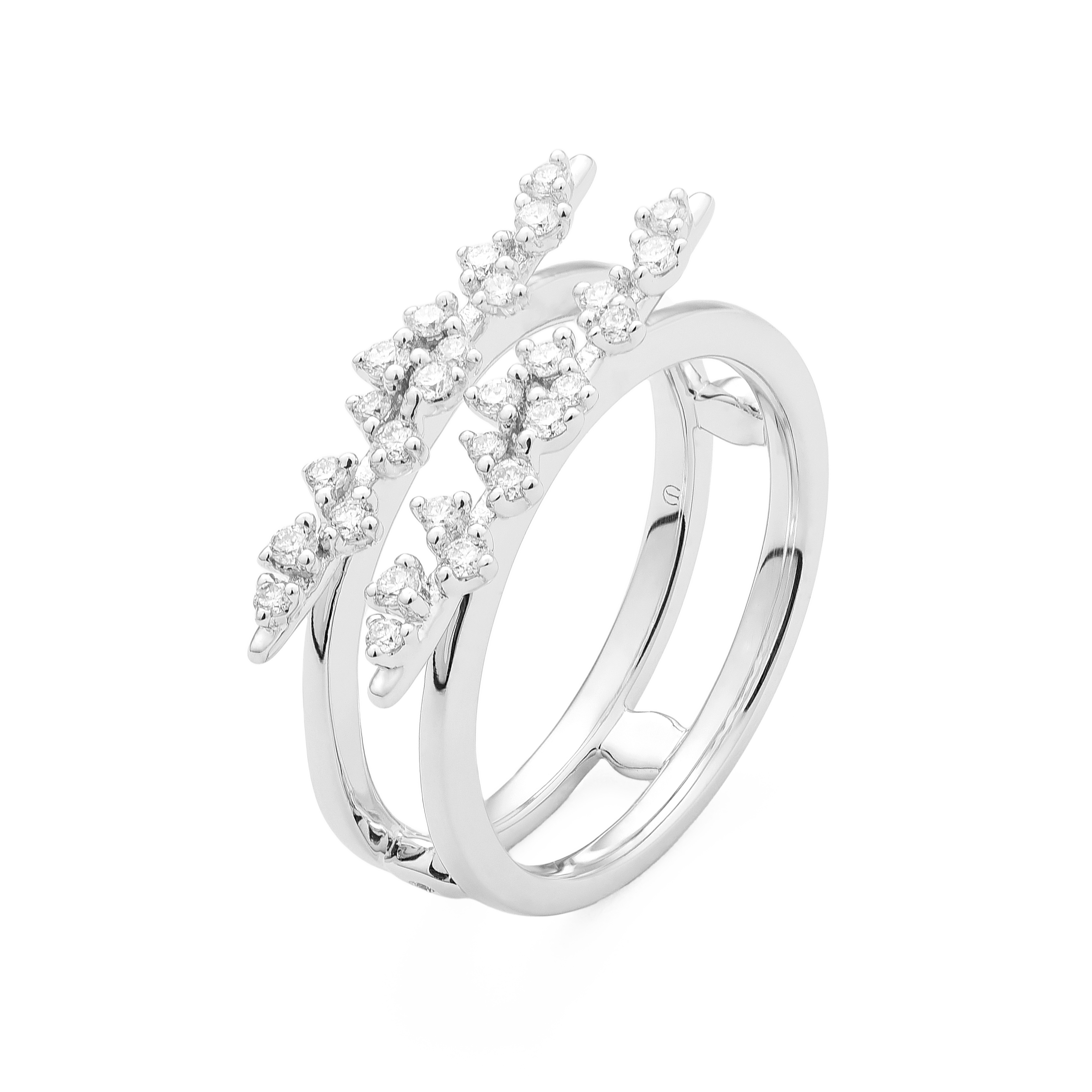 Sortija oro blanco 18K, diamante color GH, claridad SI 0.31 ct, 30 piedras