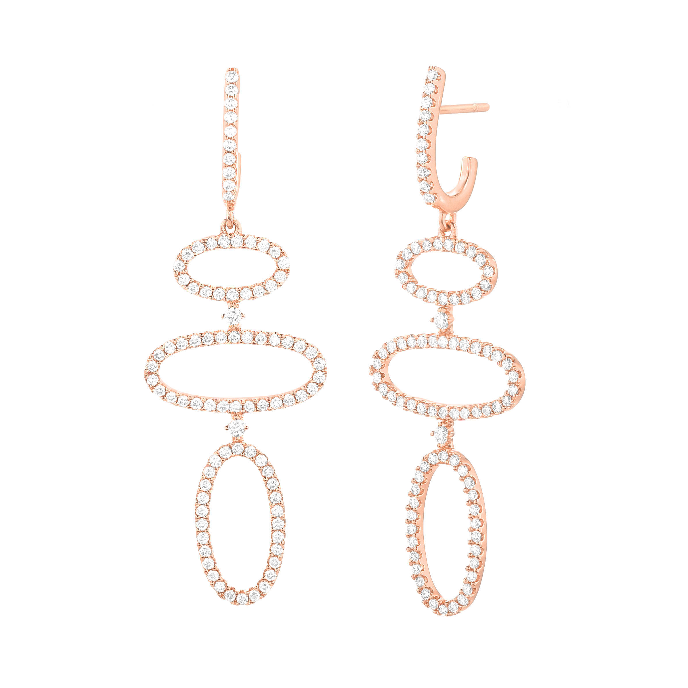 Pendientes oro rosa 18K, diamante color GH, claridad SI 1.25 ct, 178 piedras, cierre presión