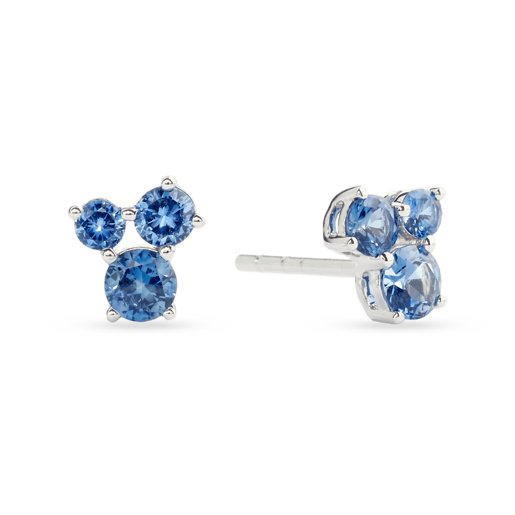 Pendientes oro blanco 18K, zafiro, cierre presión