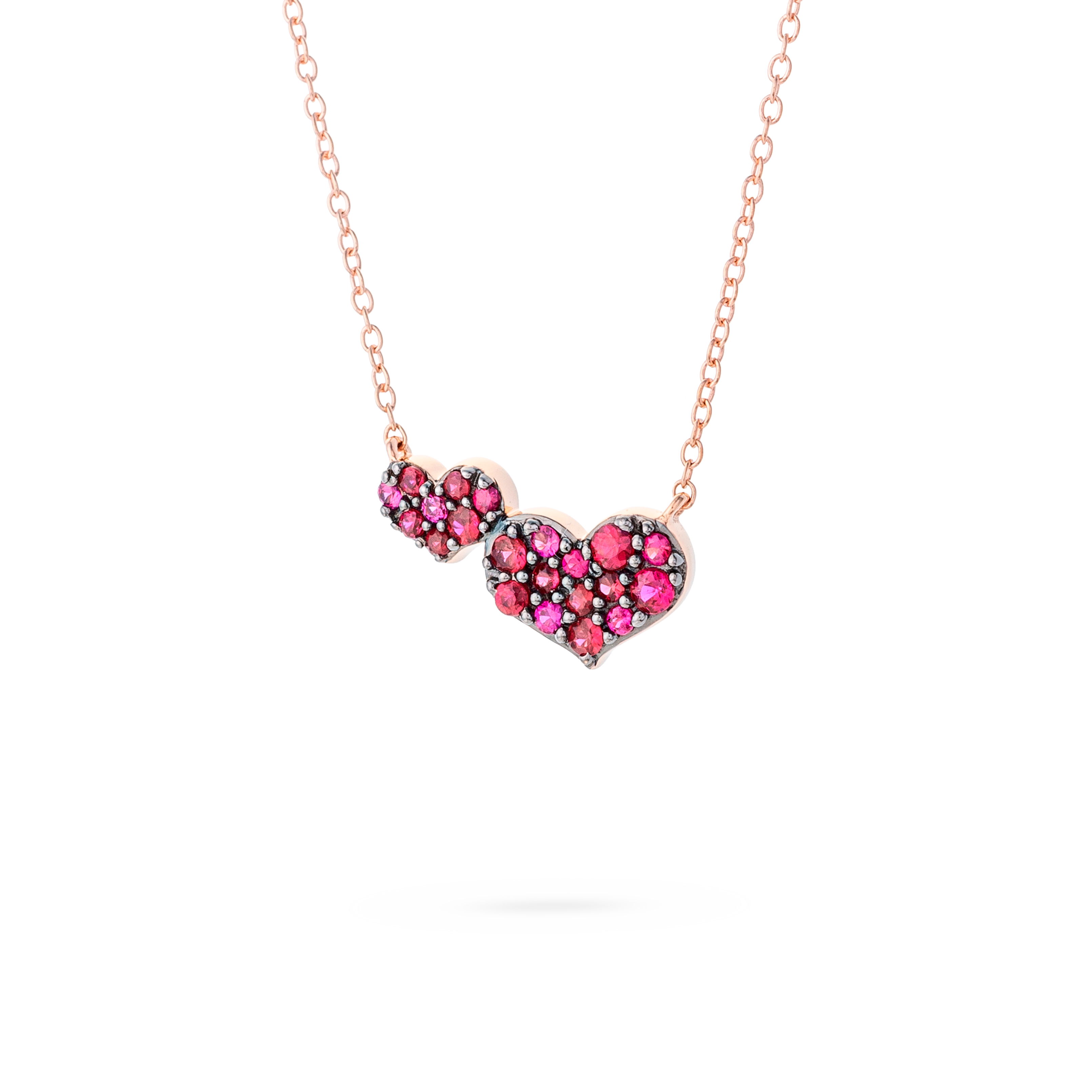 Colgante oro rosa 18K, rubi, cadena rolo 42cm cierre mosqueton