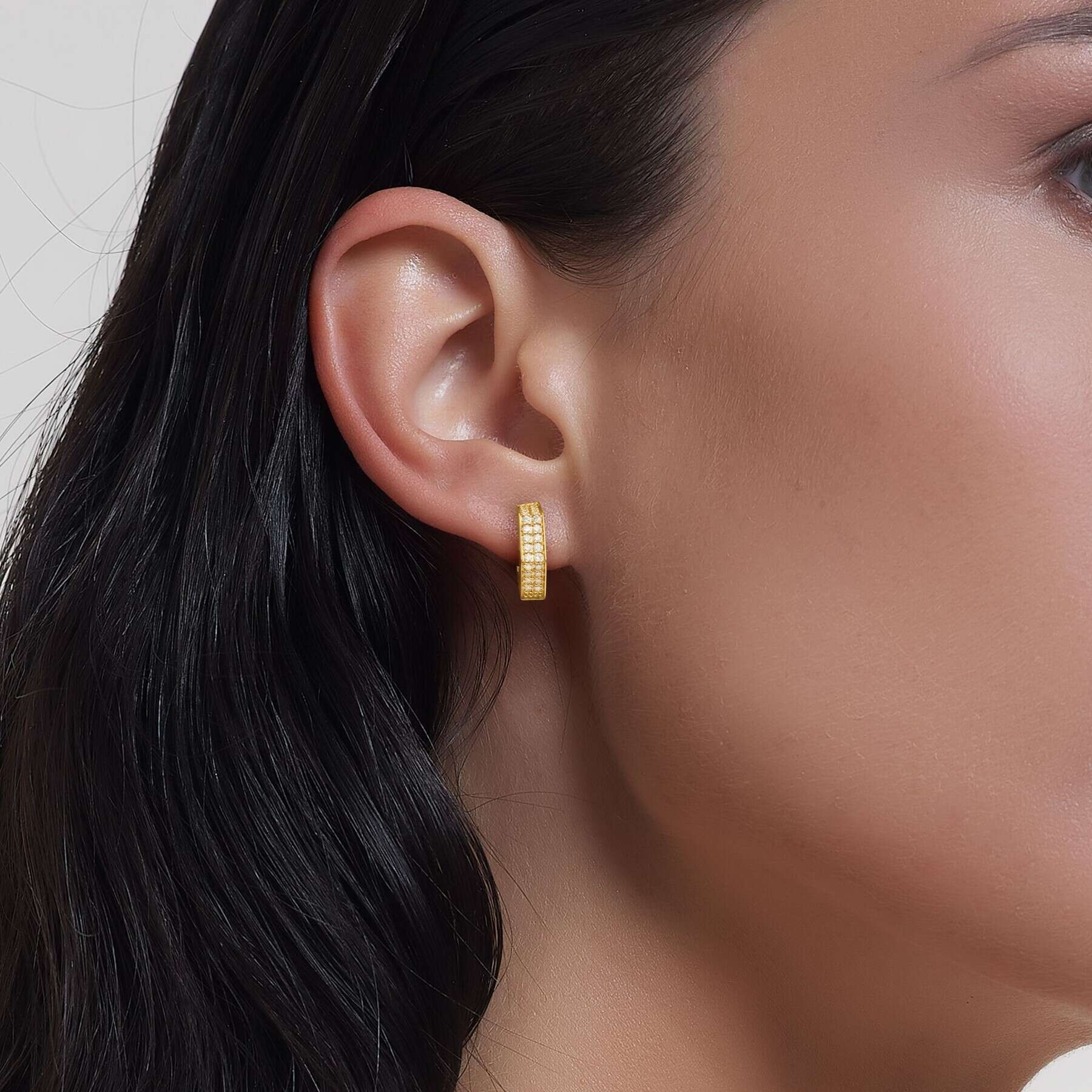 Pendientes oro amarillo 18K, diamante color GH, claridad SI 0.38 ct, 50 piedras, cierre presión