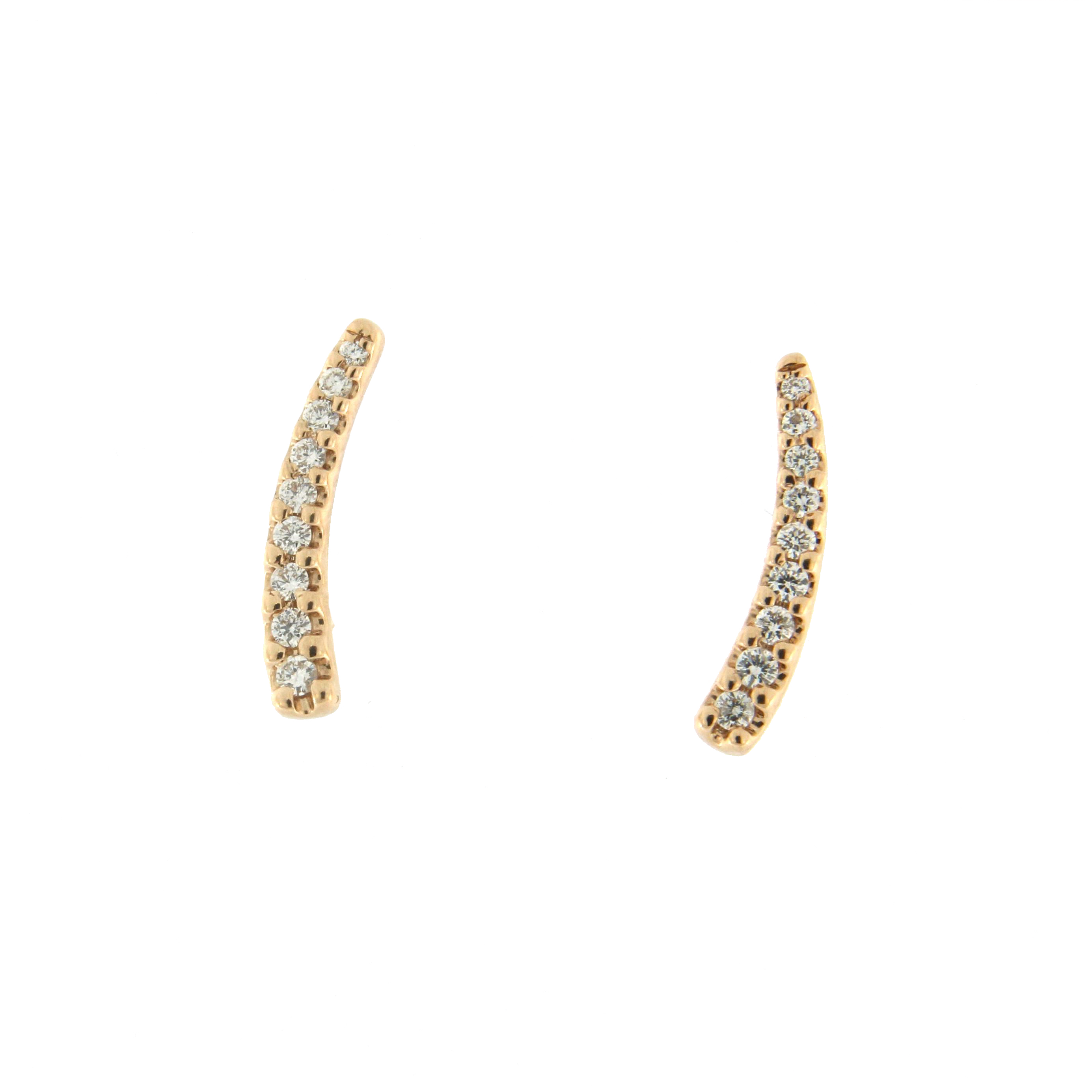 Pendientes oro rosa 18K, diamante color GH, claridad SI 0.15 ct, 18 piedras, cierre presión