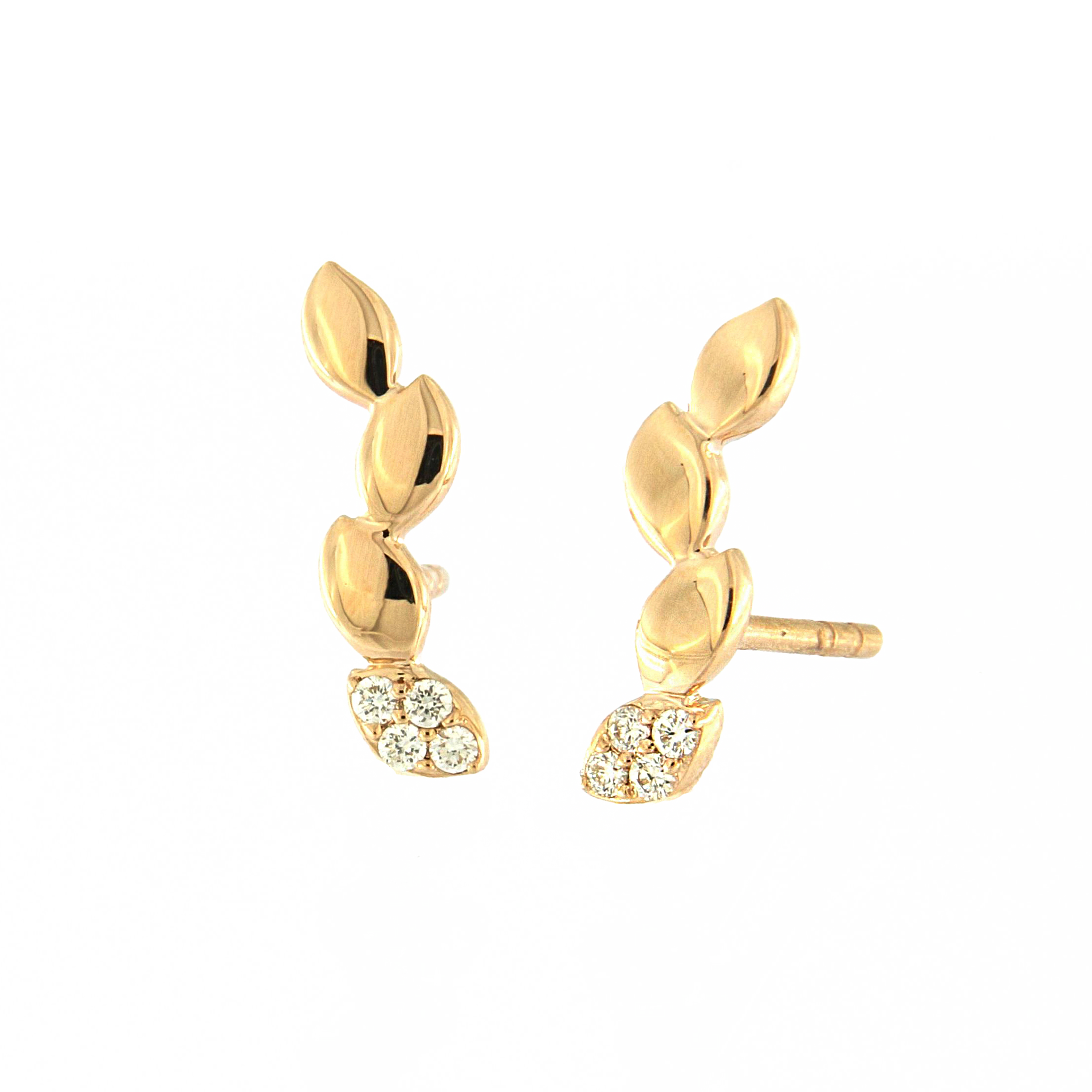 Pendientes oro amarillo 18K, diamante color GH, claridad SI 0.07 ct, 8 piedras, cierre presión