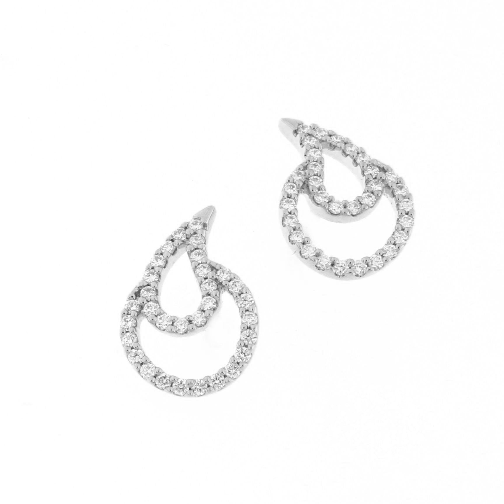 Pendientes oro blanco 18K, diamante color GH, claridad SI 0.47 ct, 62 piedras, cierre presión