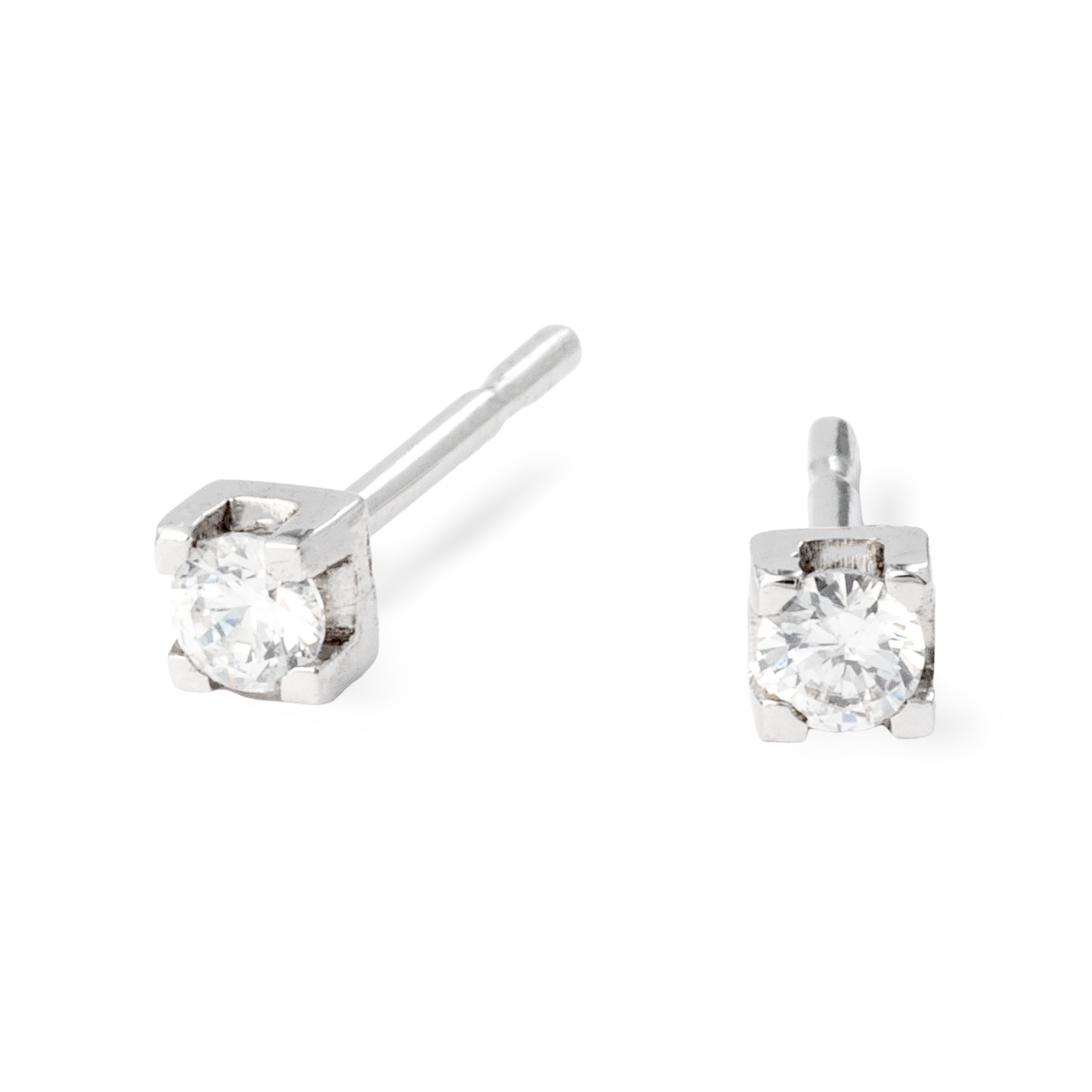 Pendientes oro blanco 18K, diamante color GH, claridad SI 0.14 ct, 2 piedras