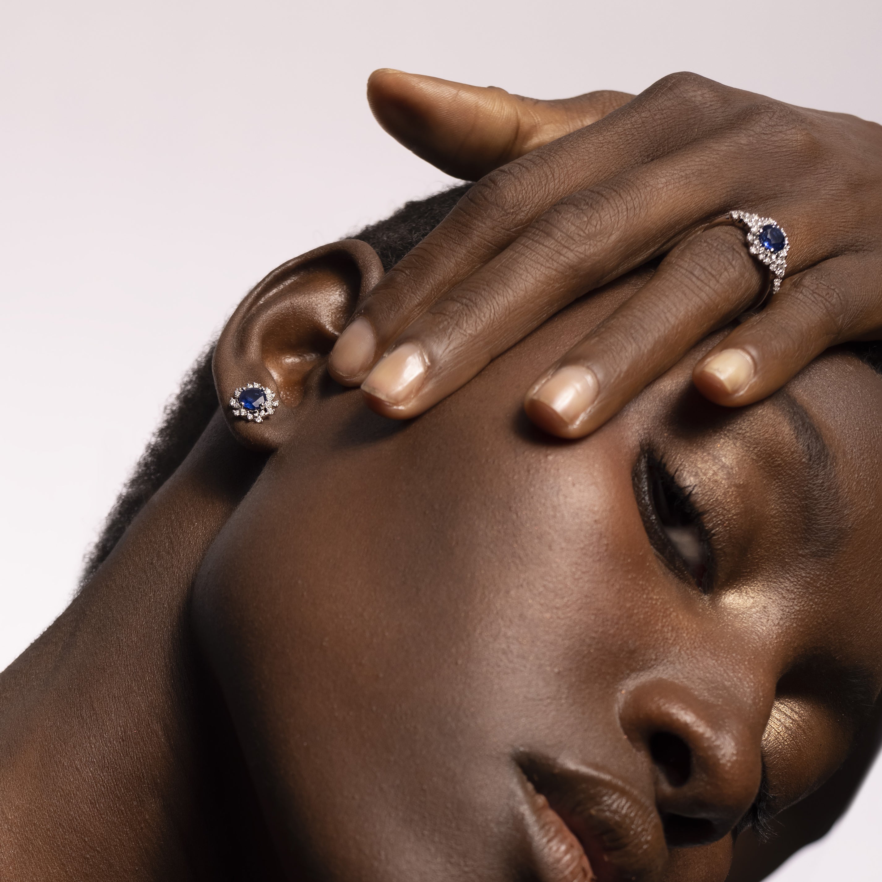 Colección Princess, Diamante 0.32 ct, zafiro, botón