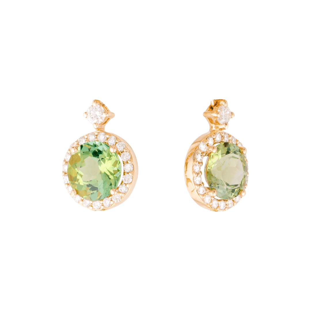 Pendientes oro amarillo 18K, diamante color GH, claridad SI 0.27 ct, cierre presión