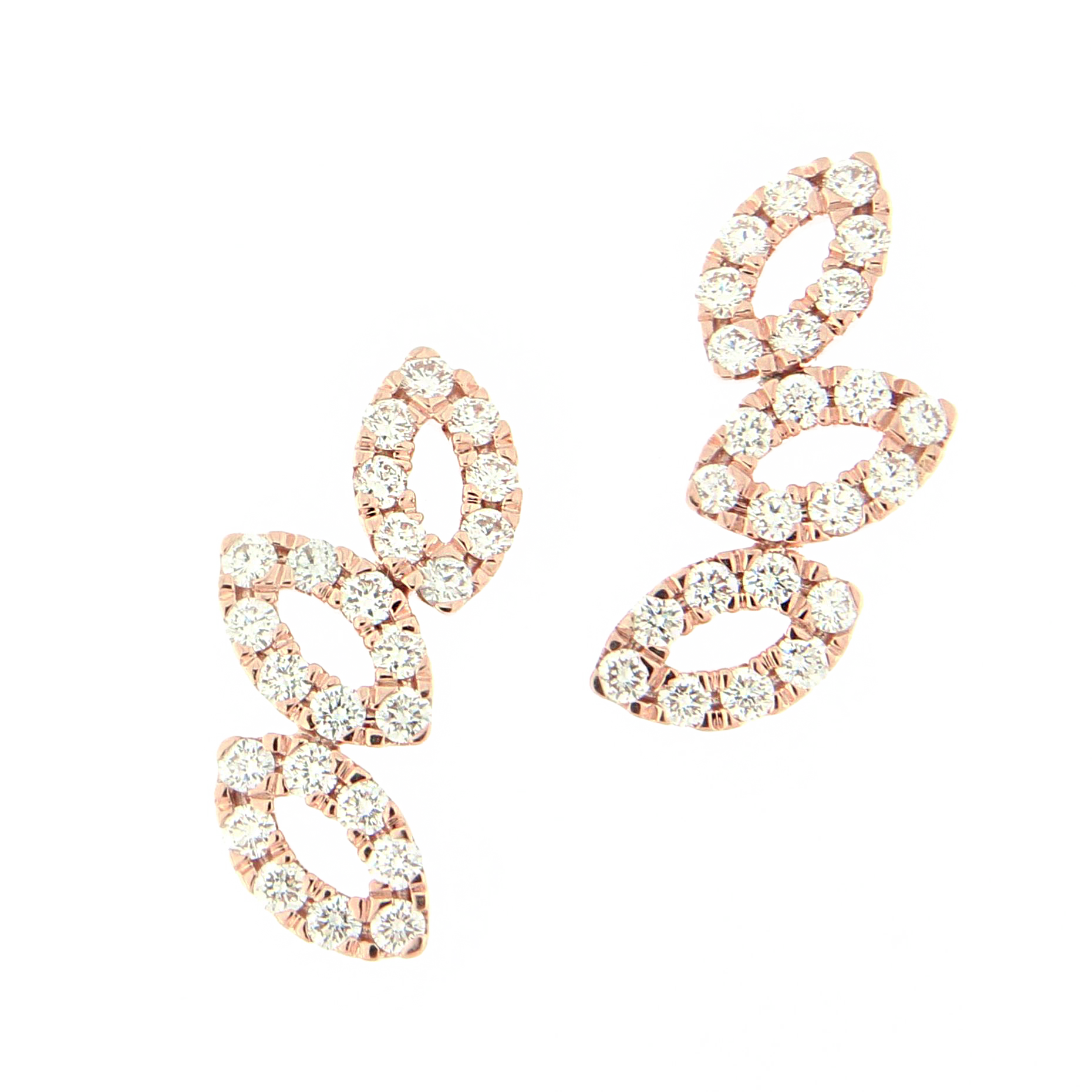 Pendientes oro rosa 18K, diamante color GH, claridad SI 1.22 ct, 48 piedras, cierre presión
