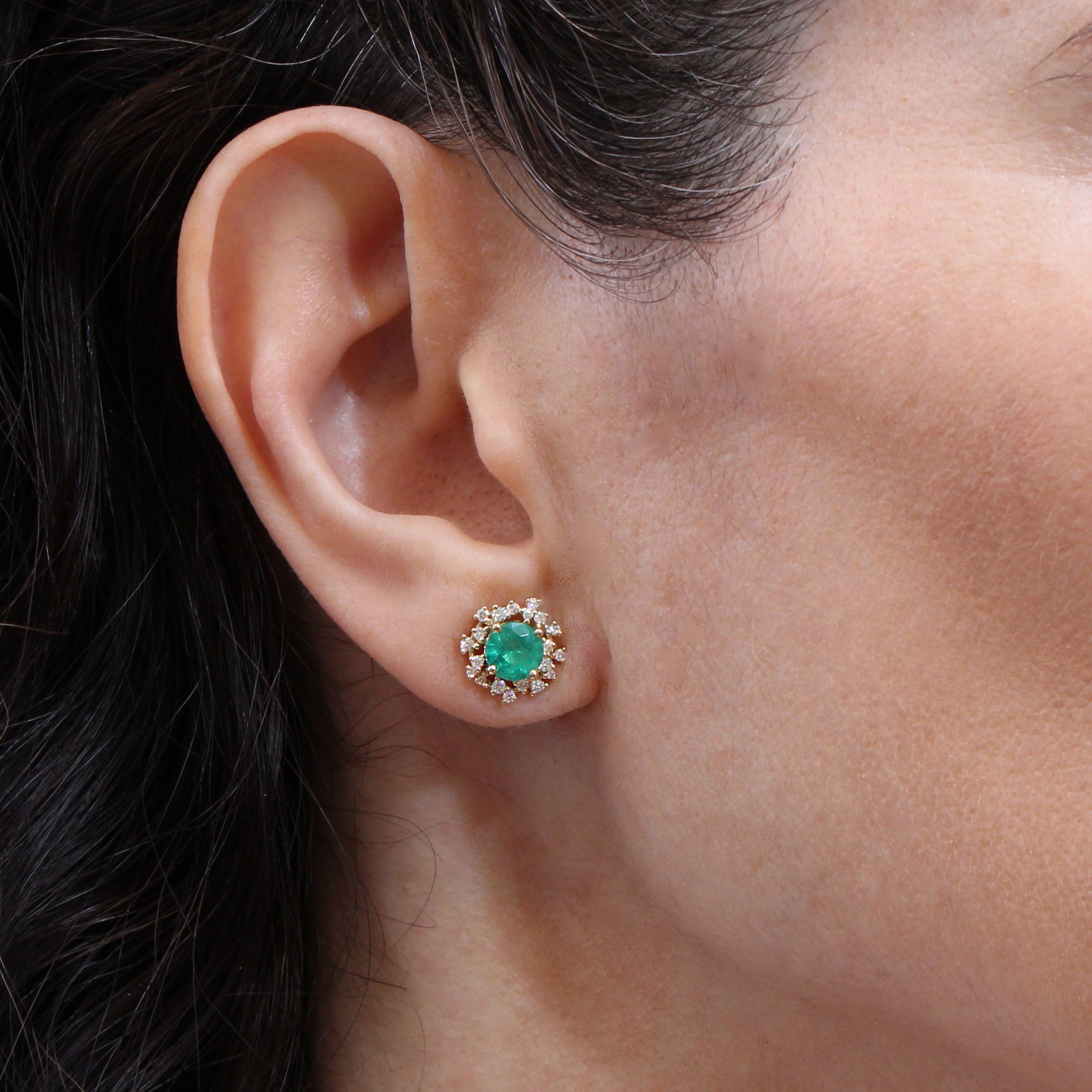 Pendientes oro amarillo 18K, diamante color GH, claridad SI 0.32 ct, esmeralda, 40 piedras, cierre presión
