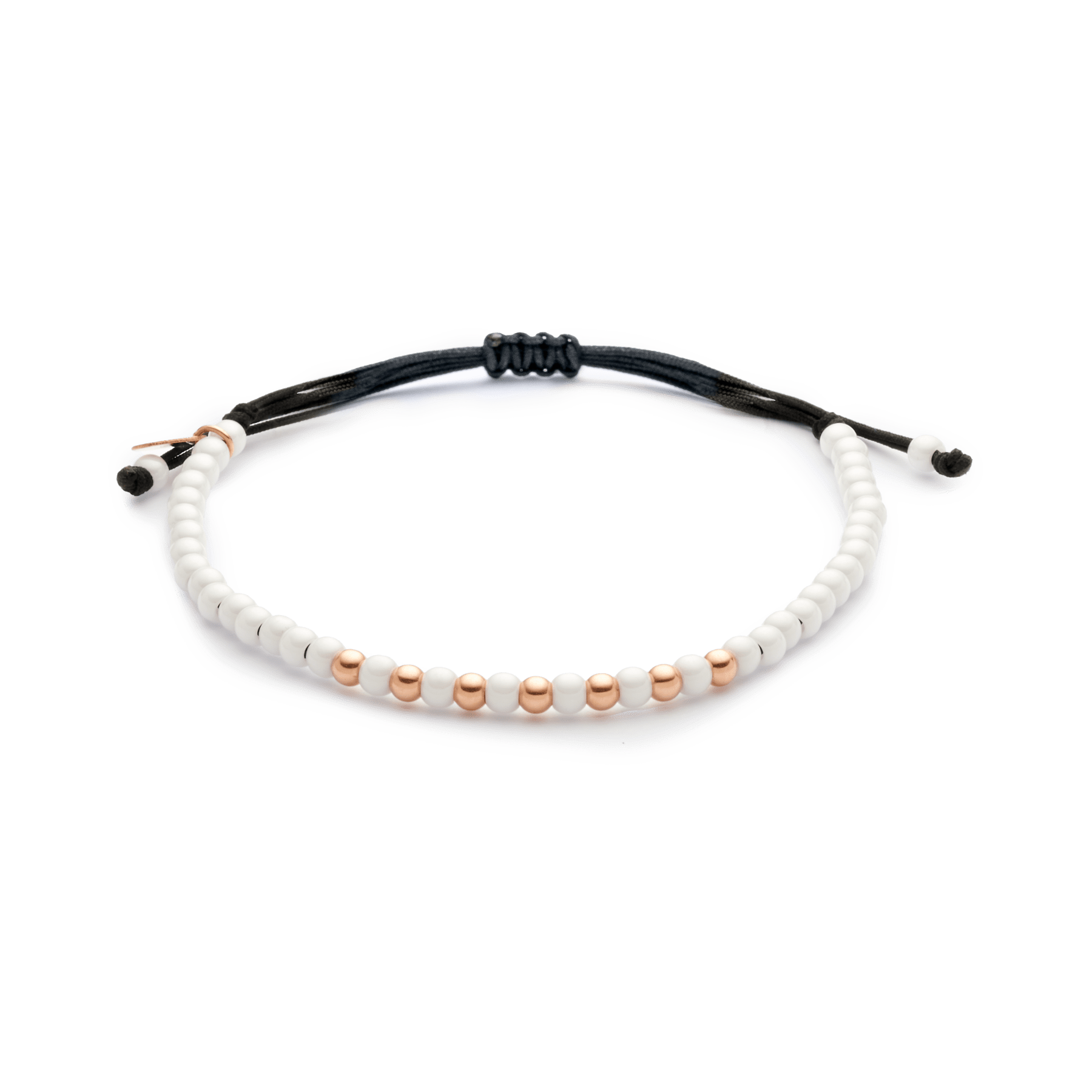 Pulsera oro rosa 18K, bola 3mm, Cordón de nailon ajustable de 15cm a 25cm