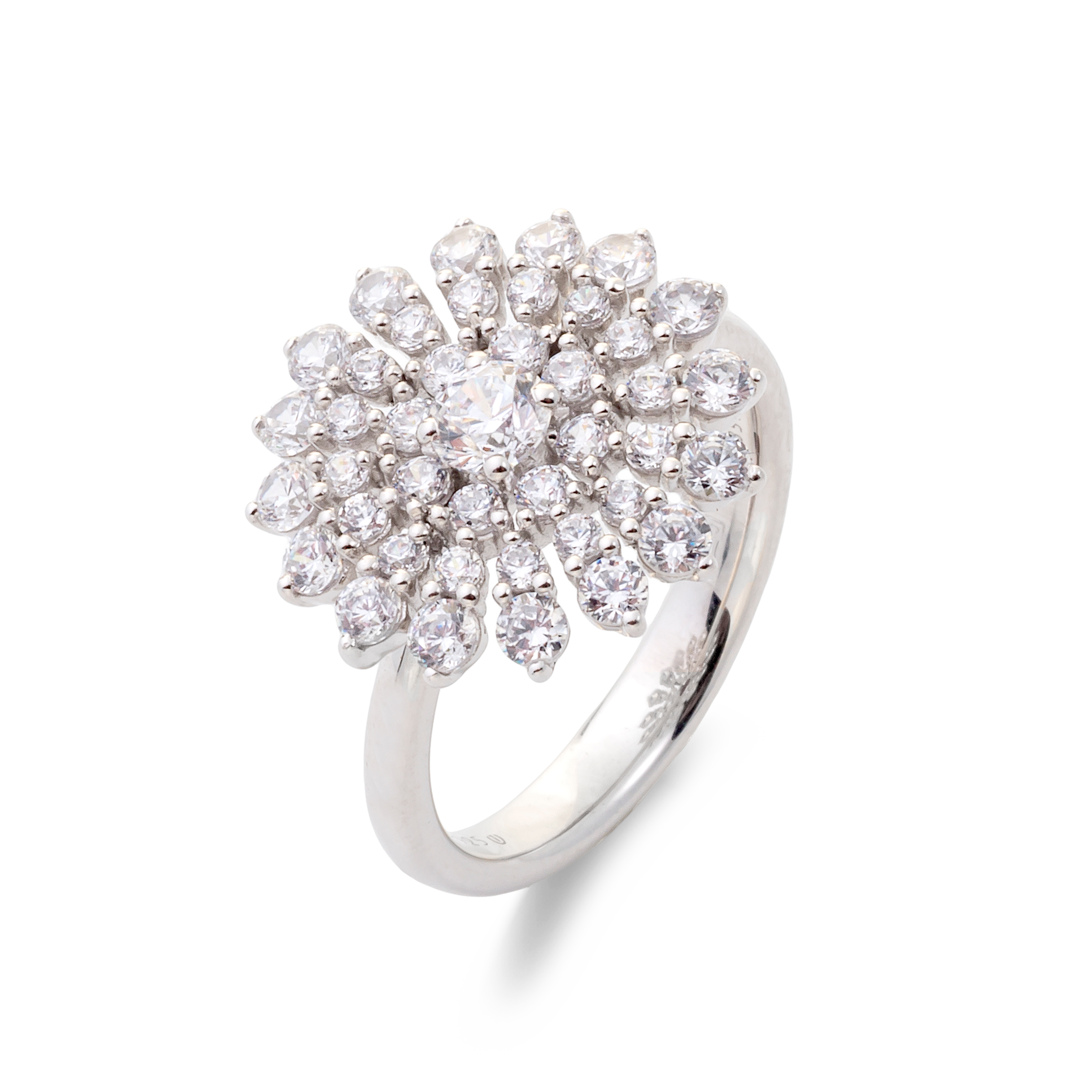 Sortija oro blanco 18K, diamante color GH, claridad SI 1.38 ct, 41 piedras
