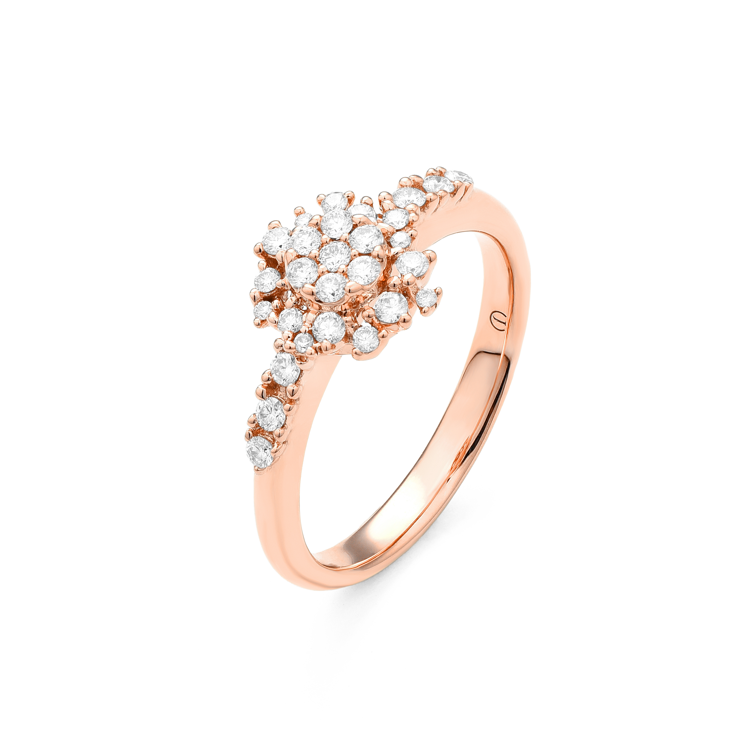 Sortija oro rosa 18K, diamante color GH, claridad SI 0.31 ct, 28 piedras