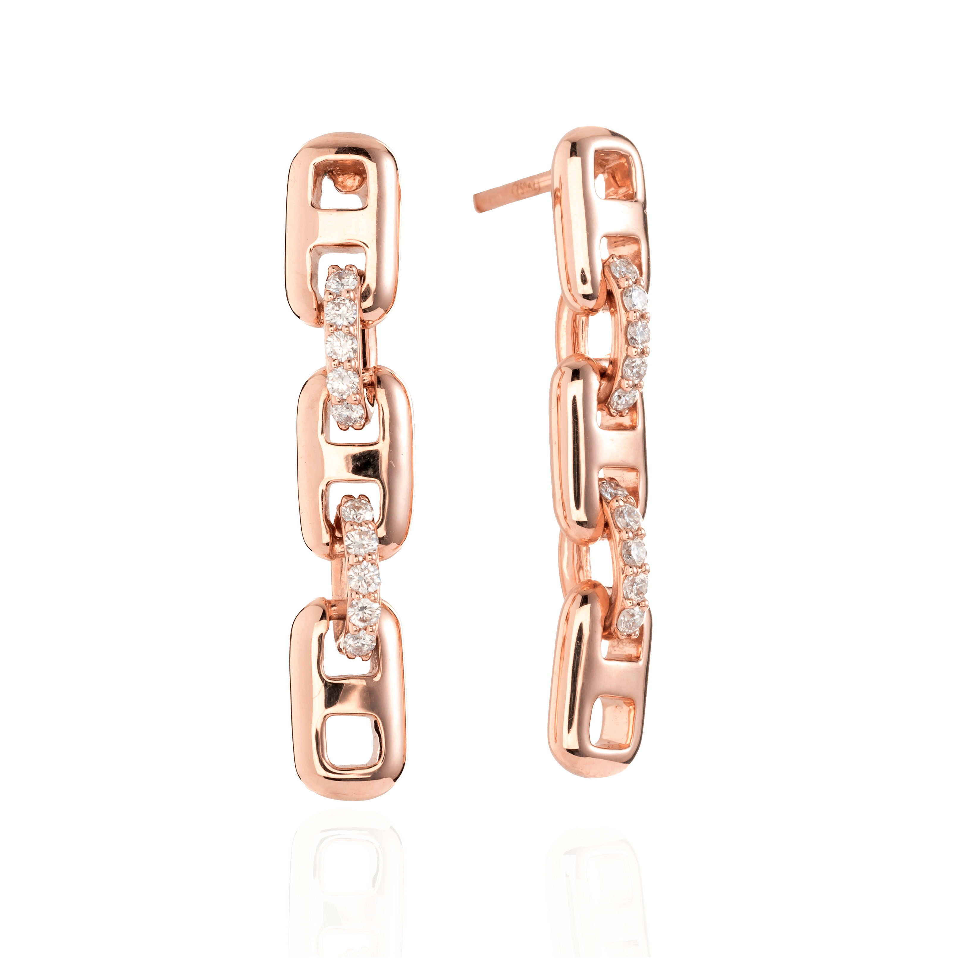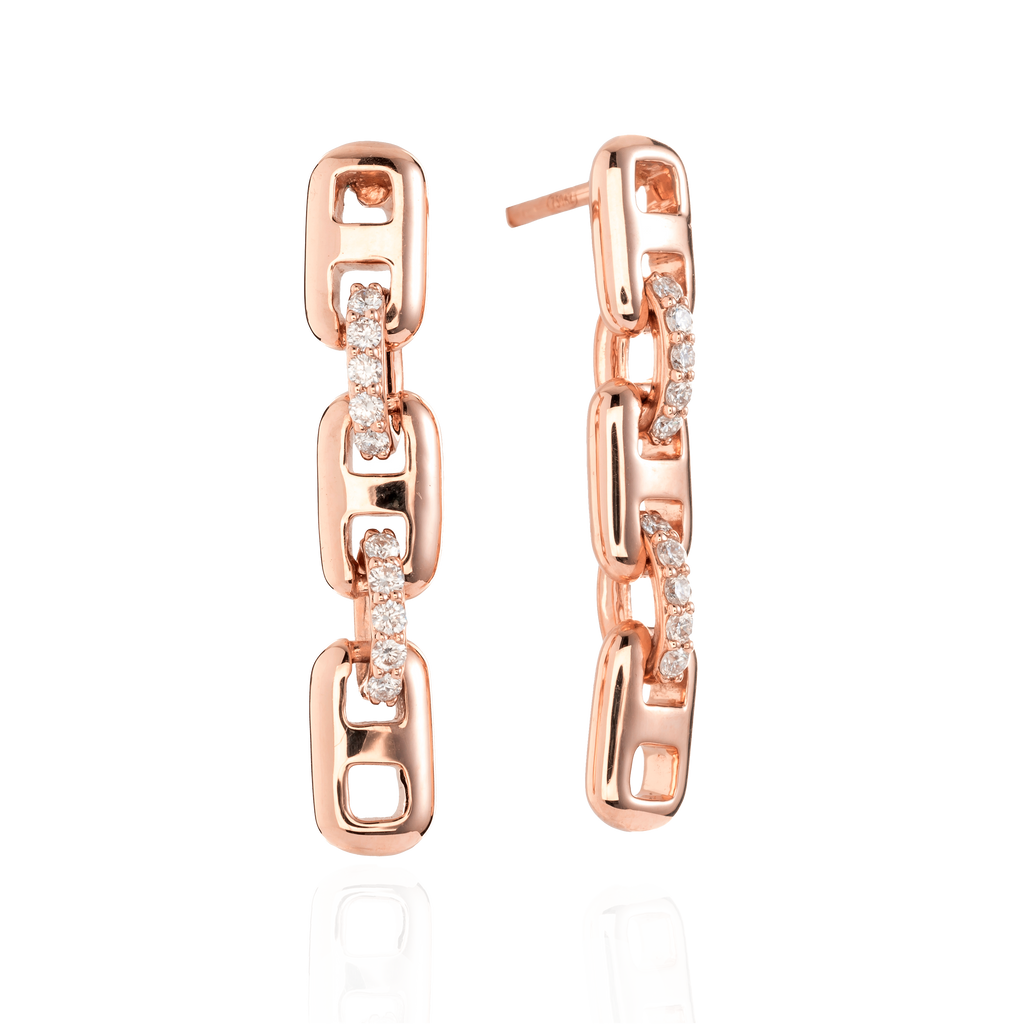 Pendientes oro rosa 18K, diamante color GH, claridad SI 0.20 ct, 20 piedras, cierre presión