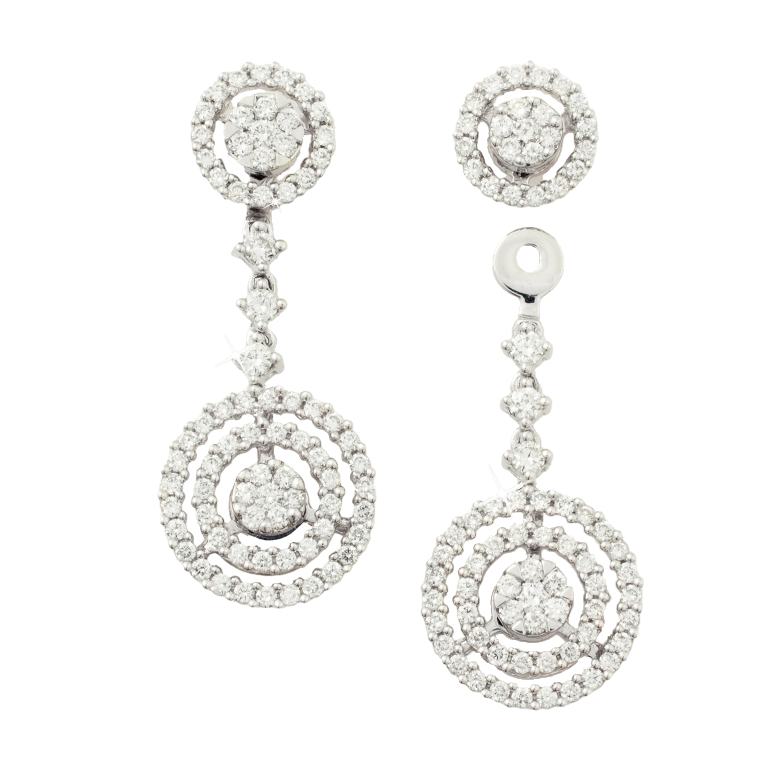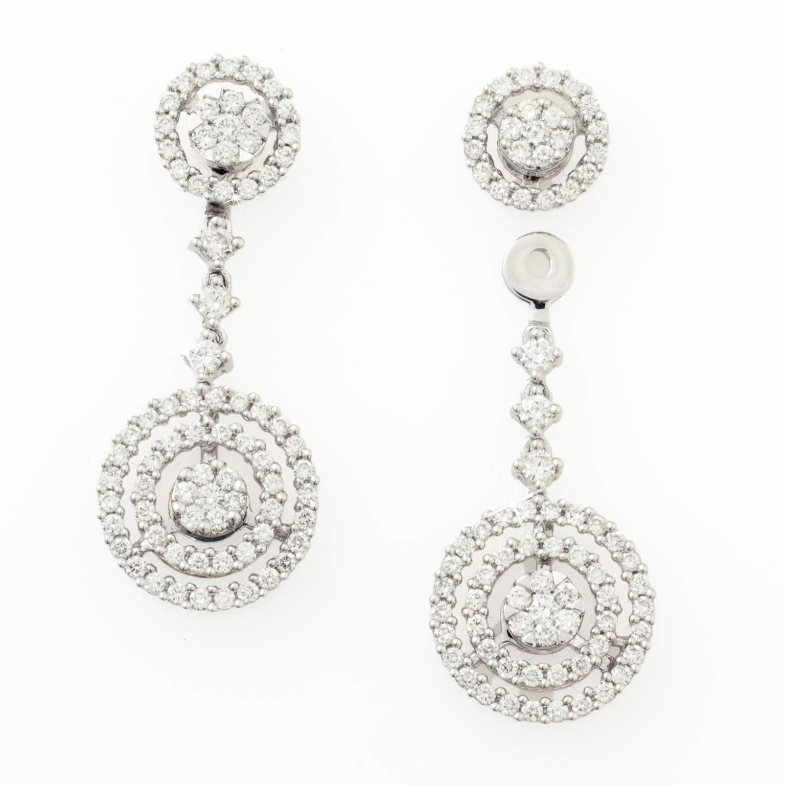 Pendientes oro blanco 18K, diamante color GH, claridad SI 1.11 ct, 150 piedras, cierre presión