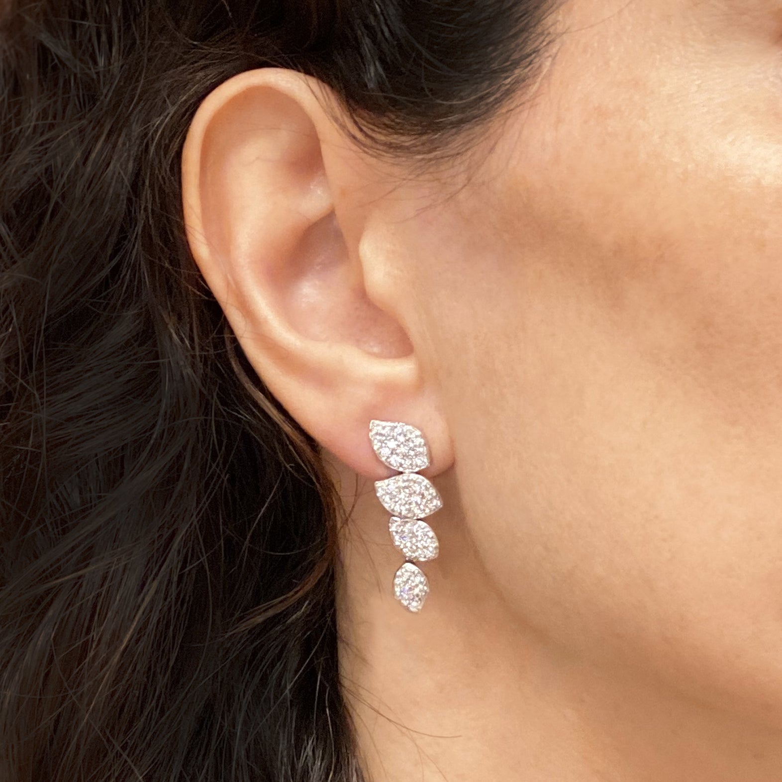 Pendientes oro blanco 18K, diamante color GH, claridad SI 1.40 ct, 100 piedras, cierre presión