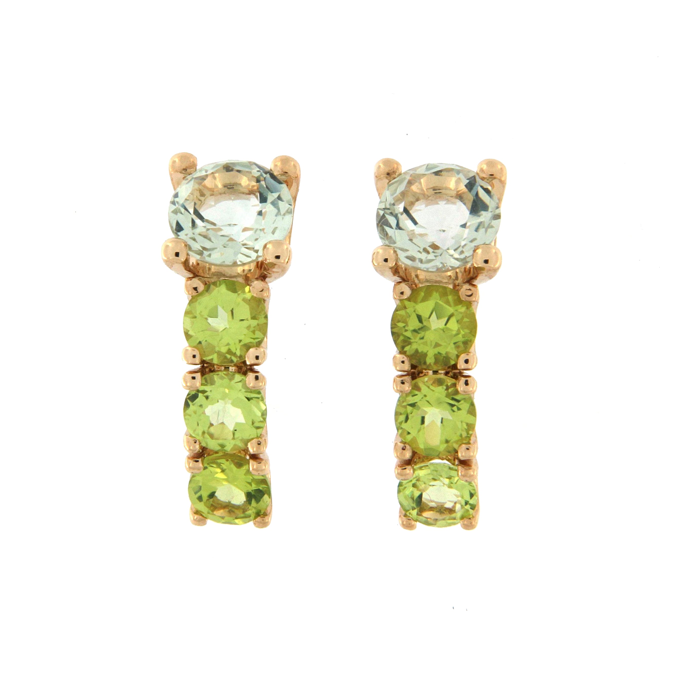 Pendientes oro rosa 18K, peridoto y prasiolita, cierre presión