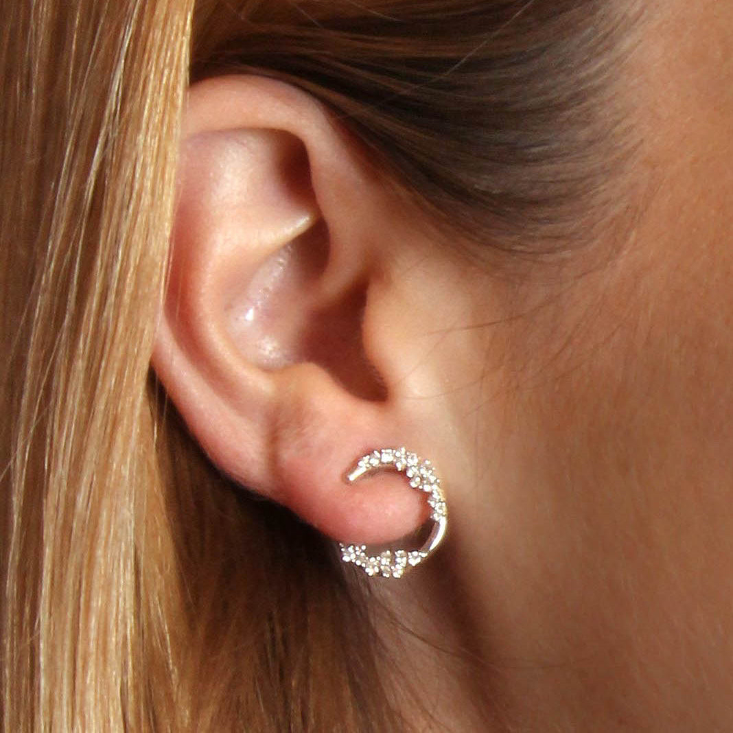 Pendientes oro blanco 18K, diamante color GH, claridad SI 0.52 ct, 44 piedras, cierre presión