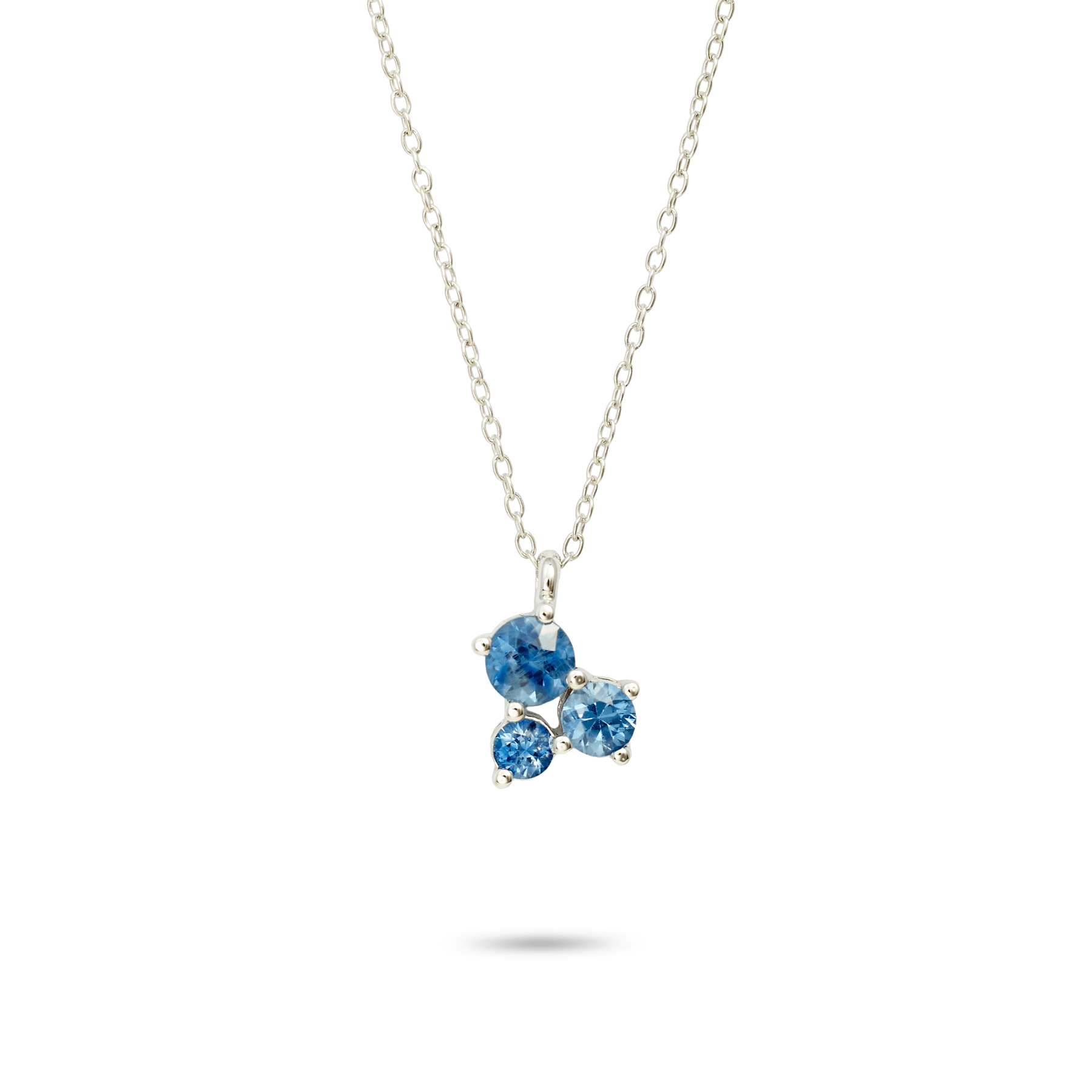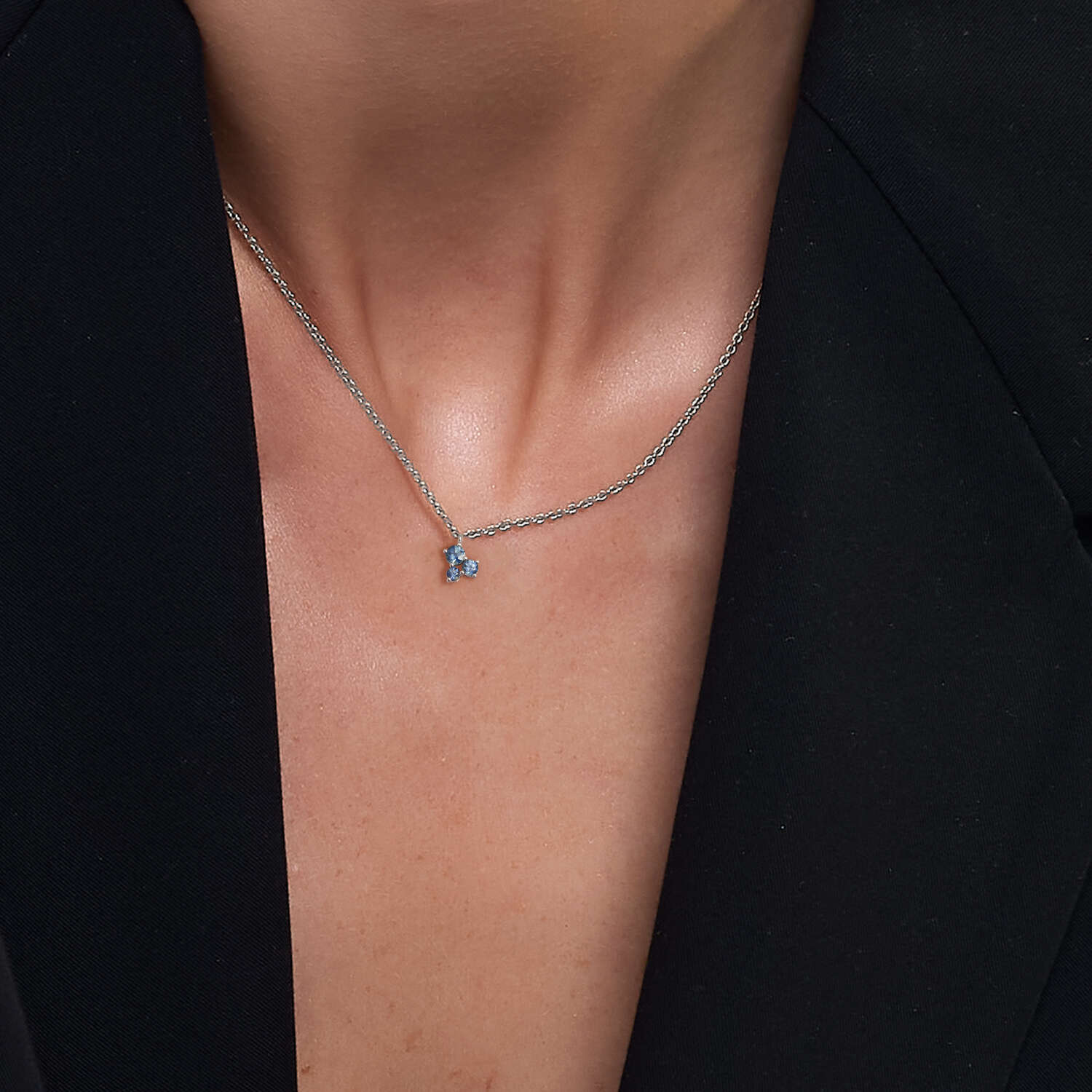 Colgante oro blanco 18K, zafiro, cadena 42cm cierre mosqueton