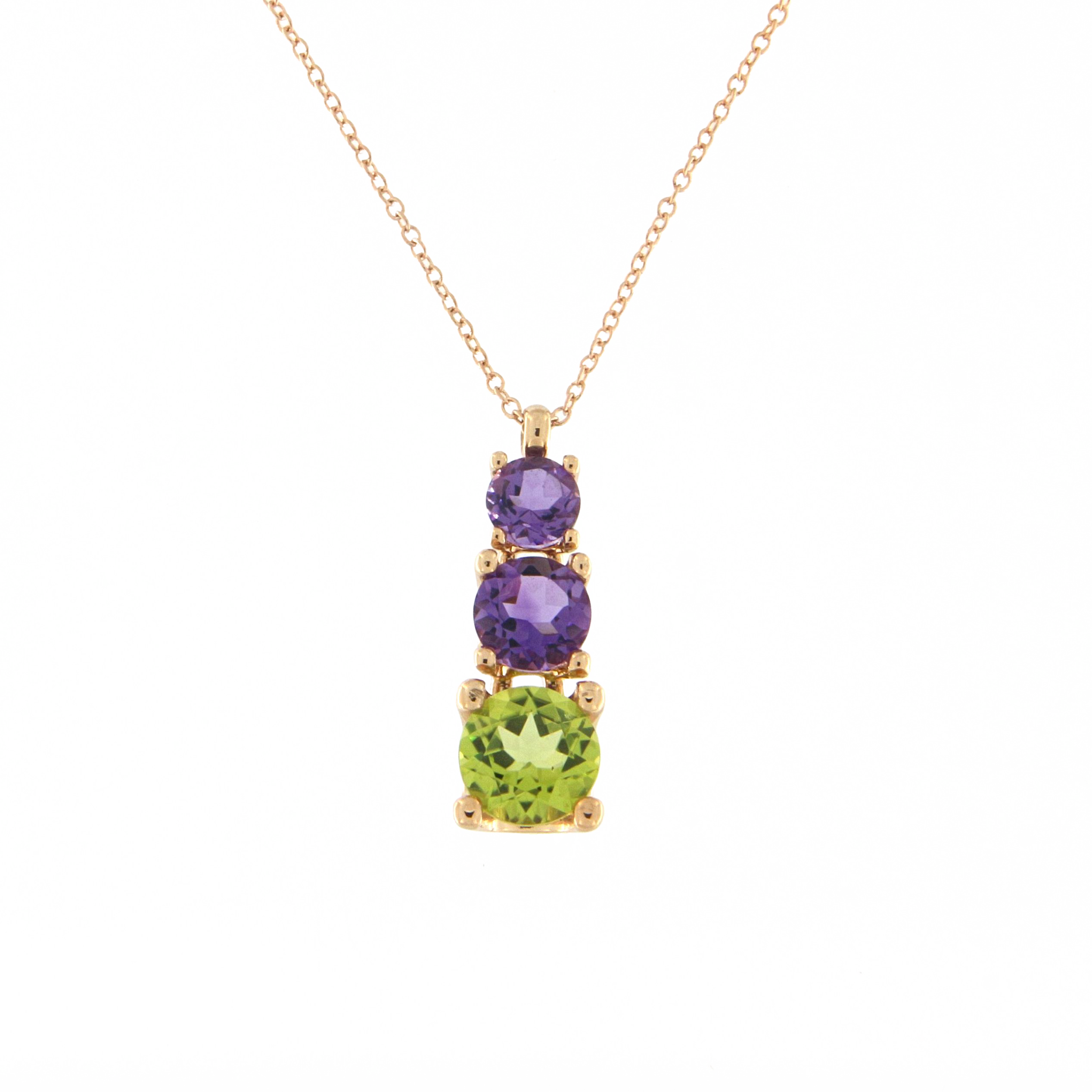 Colgante oro rosa 18K, amatista y peridoto, cadena rolo 42cm cierre mosqueton