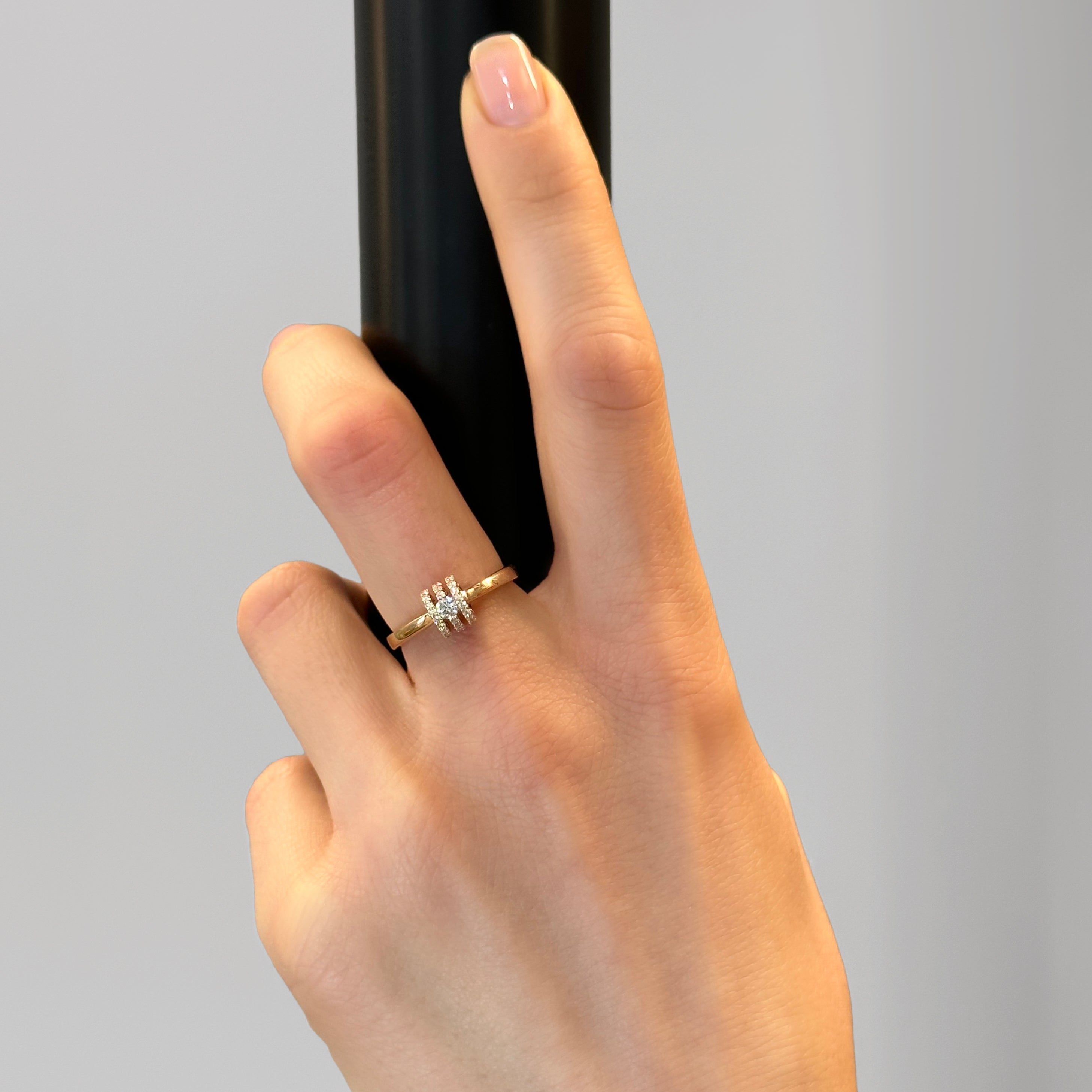Sortija oro rosa 18K, diamante color GH, claridad SI 0.31 ct, 41 piedras