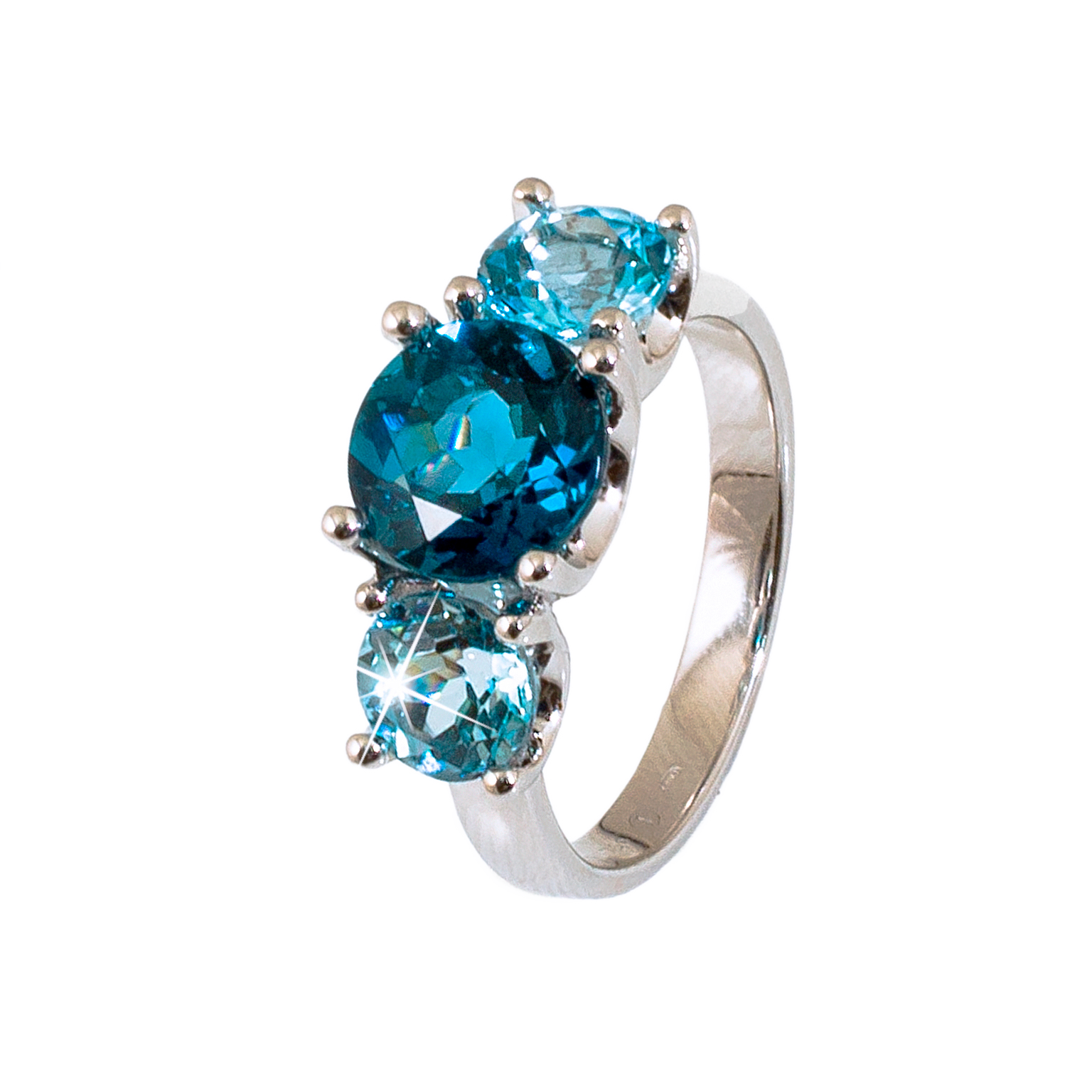 Sortija oro blanco 18K, london blue