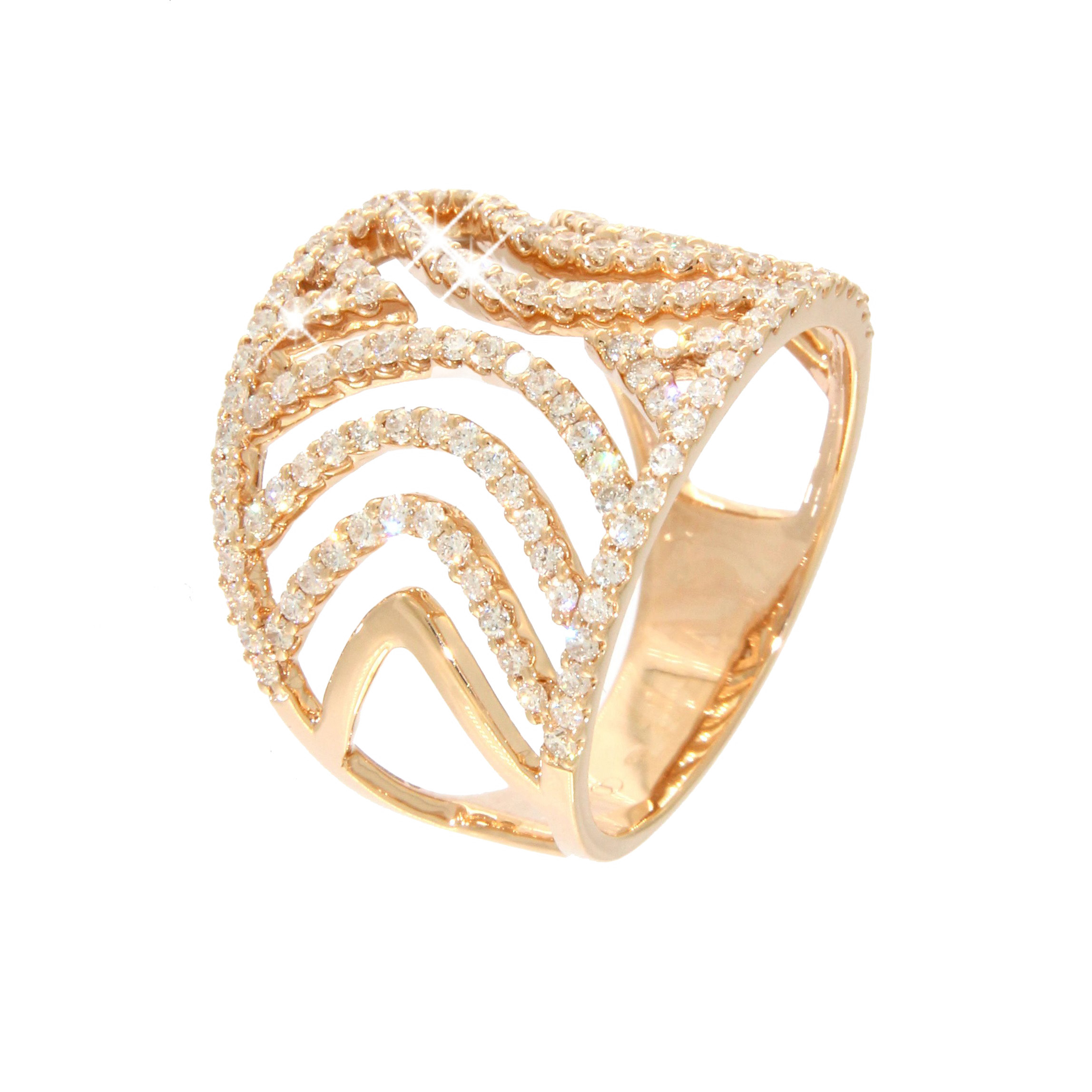 Sortija oro rosa 18K, diamante color GH, claridad SI 0.94 ct, 132 piedras