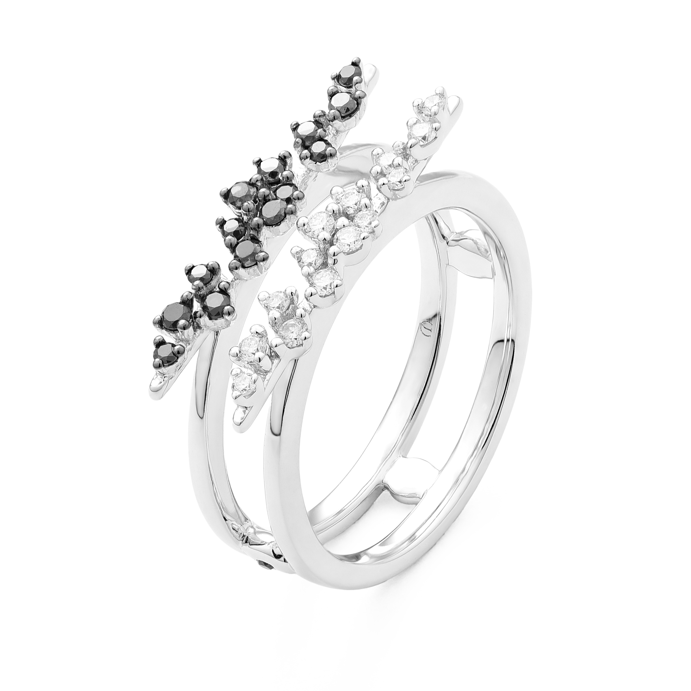 Sortija oro blanco 18K, diamante negro 0.18 ct y diamante color GH, claridad SI 0.15 ct, 30 piedras