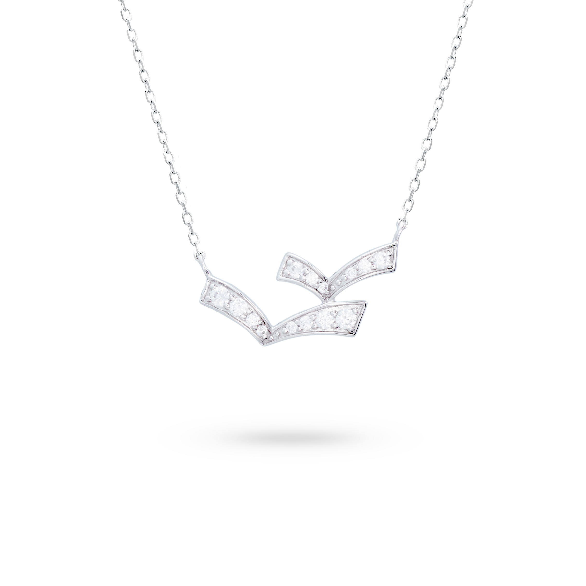 Colgante oro blanco 18K, diamante color GH, claridad SI 0.16 ct, 14 piedras, cadena 42cm cierre mosqueton